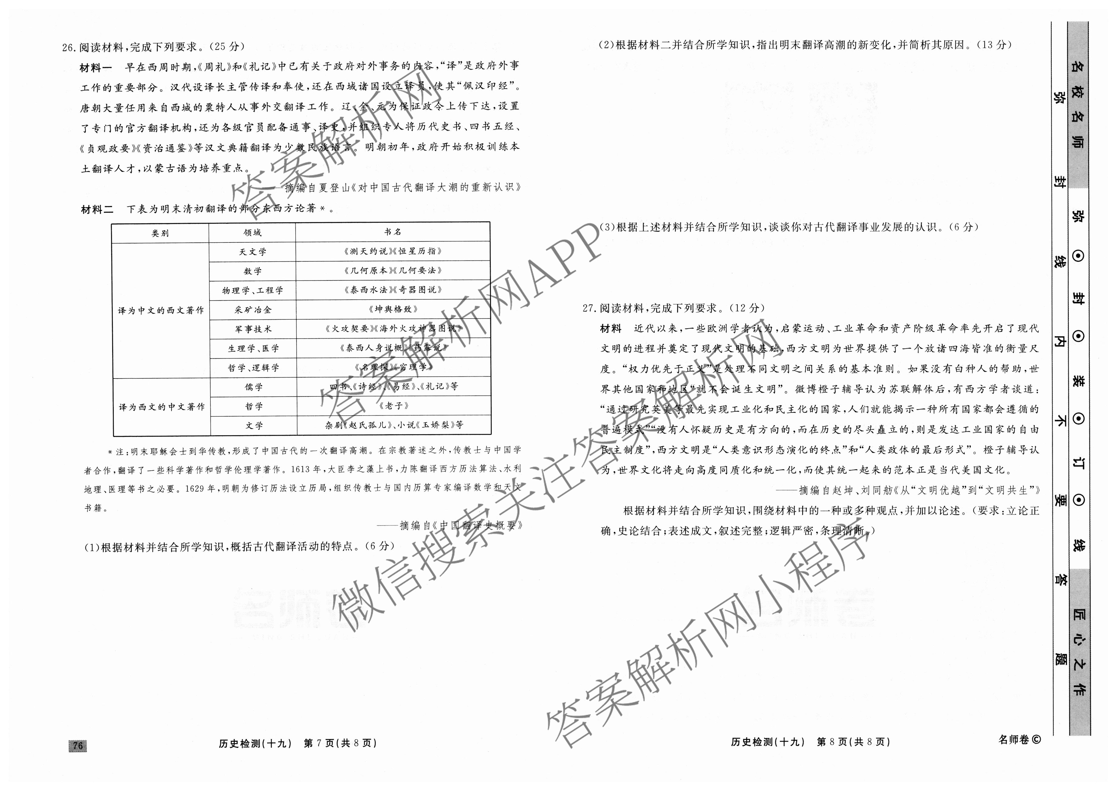 衡水名师卷2023-2024学年度高三一轮复习单元检测卷历史(⊙)检测(十九)19试题