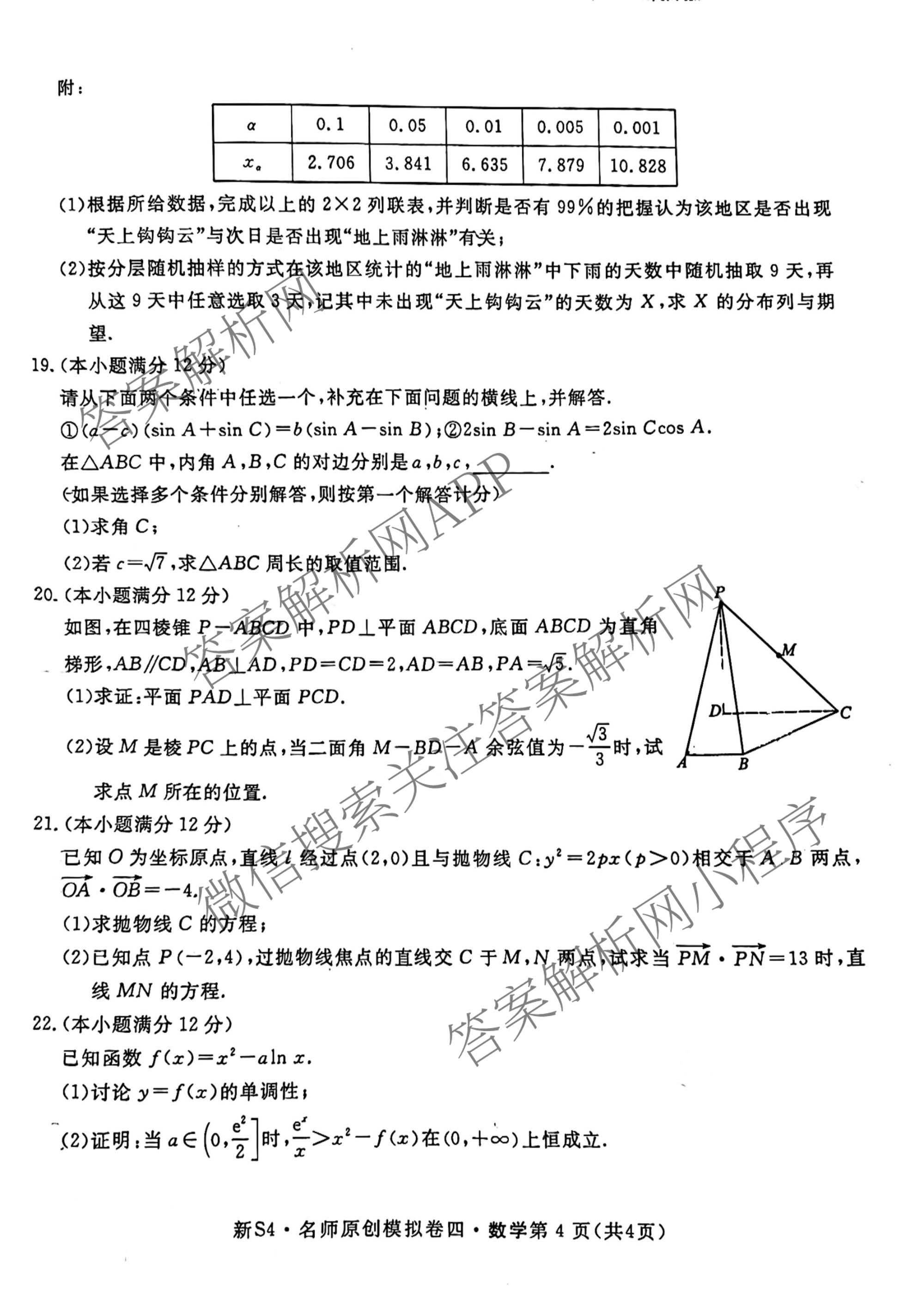 - 2024届[[高三]总复习·名师原创模拟]卷·理数(S4)(四)4答案