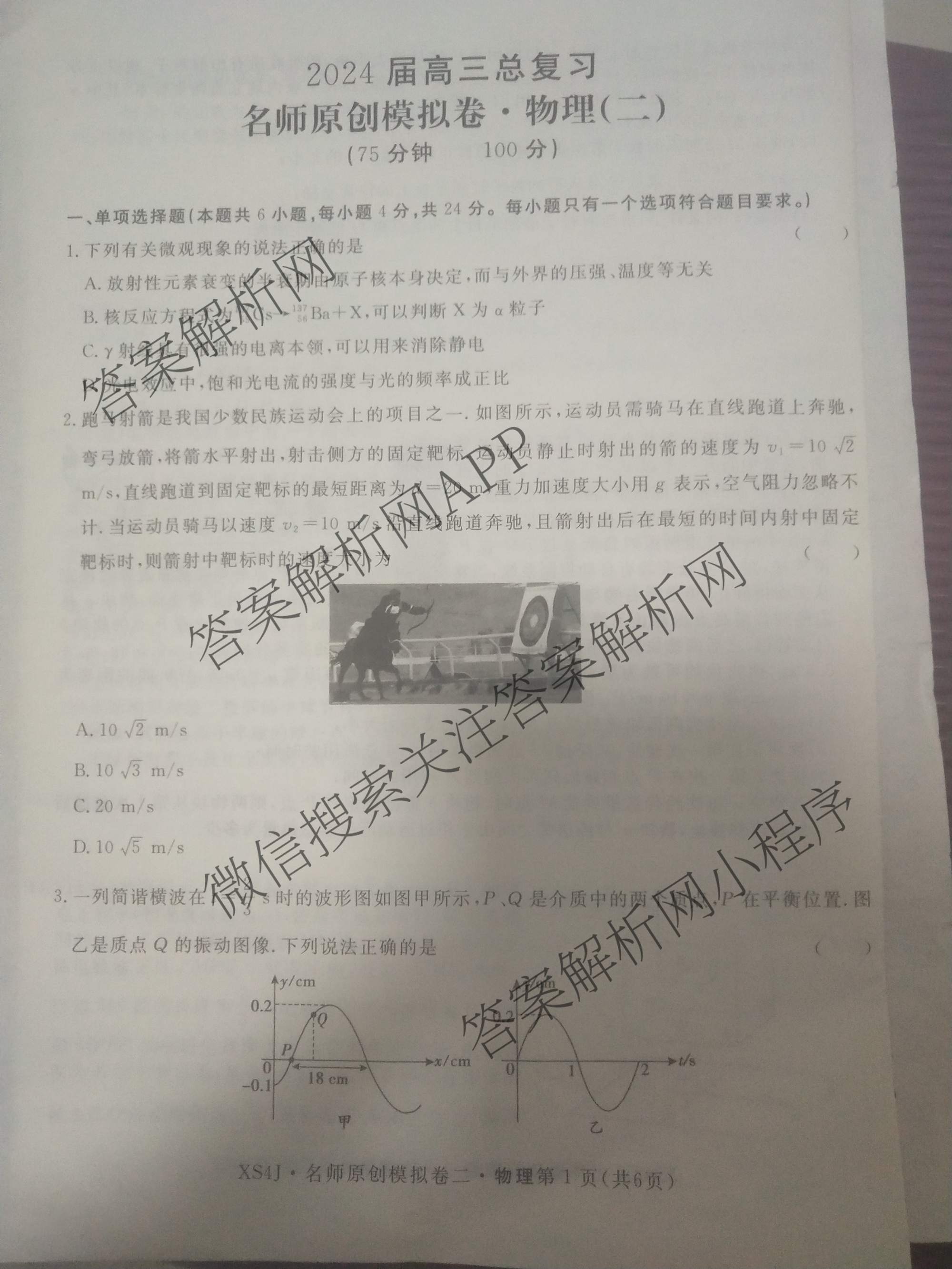 2024届[[高三]总复习·名师原创模拟] 物理(XS4J)(二)2试题