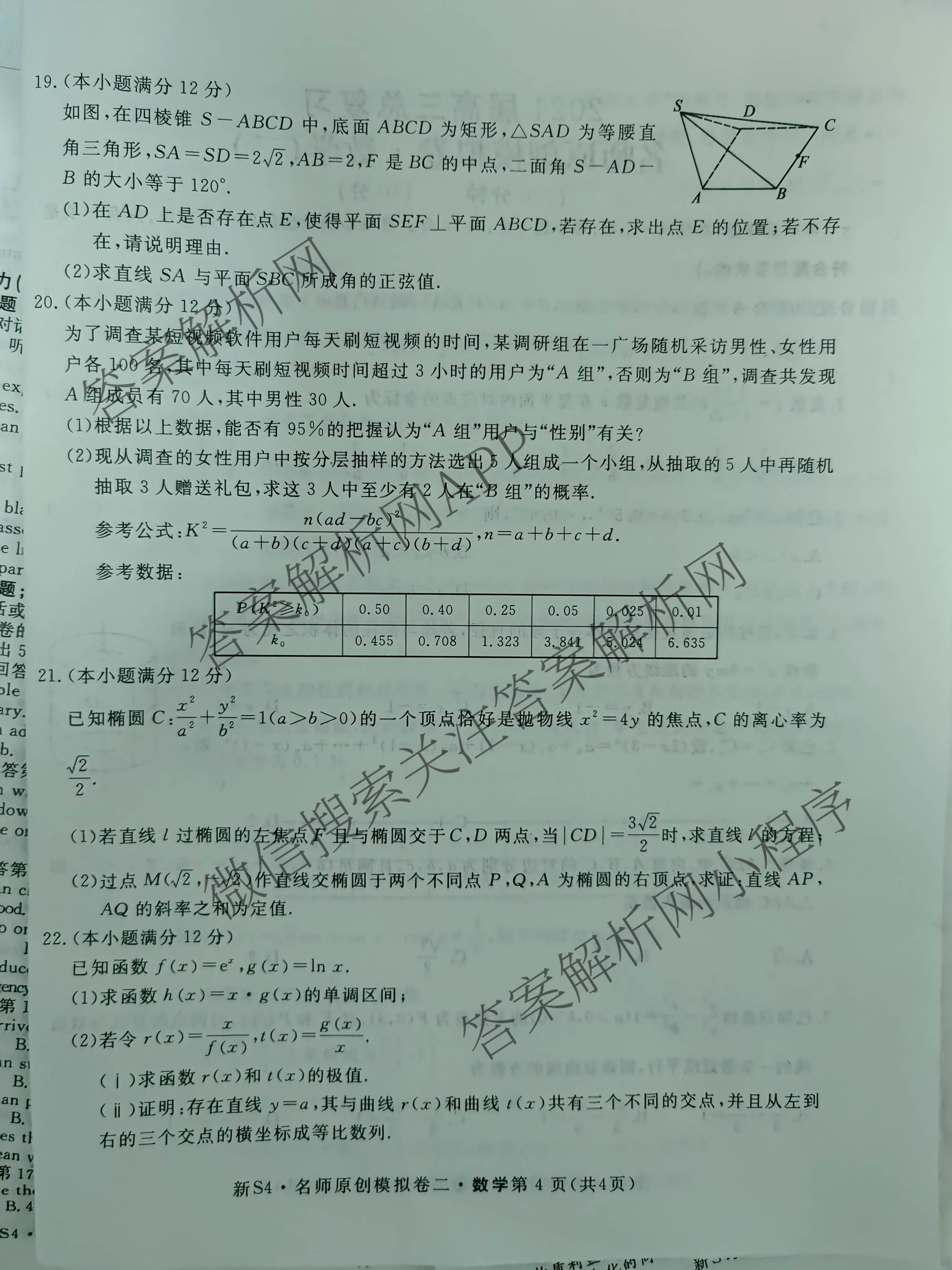 2024届高三总复习·名师原创模拟 数学(新S4)(二)2试题,目前分科卷答案网已经汇总了2024届高三总复习·名师原创模拟 数学(新S4)(二)2试题的各科答案和试卷,获取更多高三总复习·名师原创模拟答案解析,请在关注本站。
