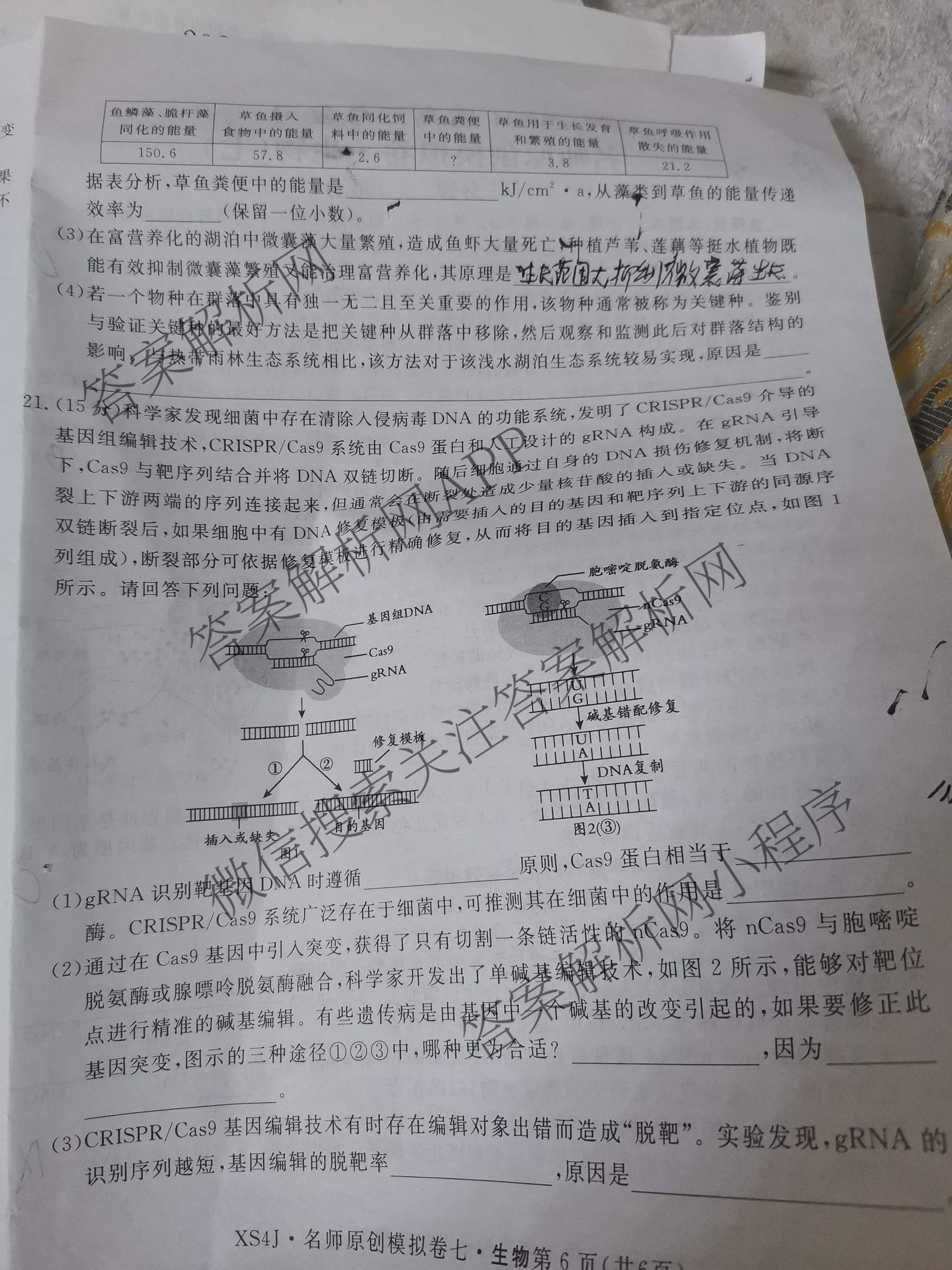 - [高三]2024届[总复习名师原创模拟]卷 生物(D4J)(七)7答案