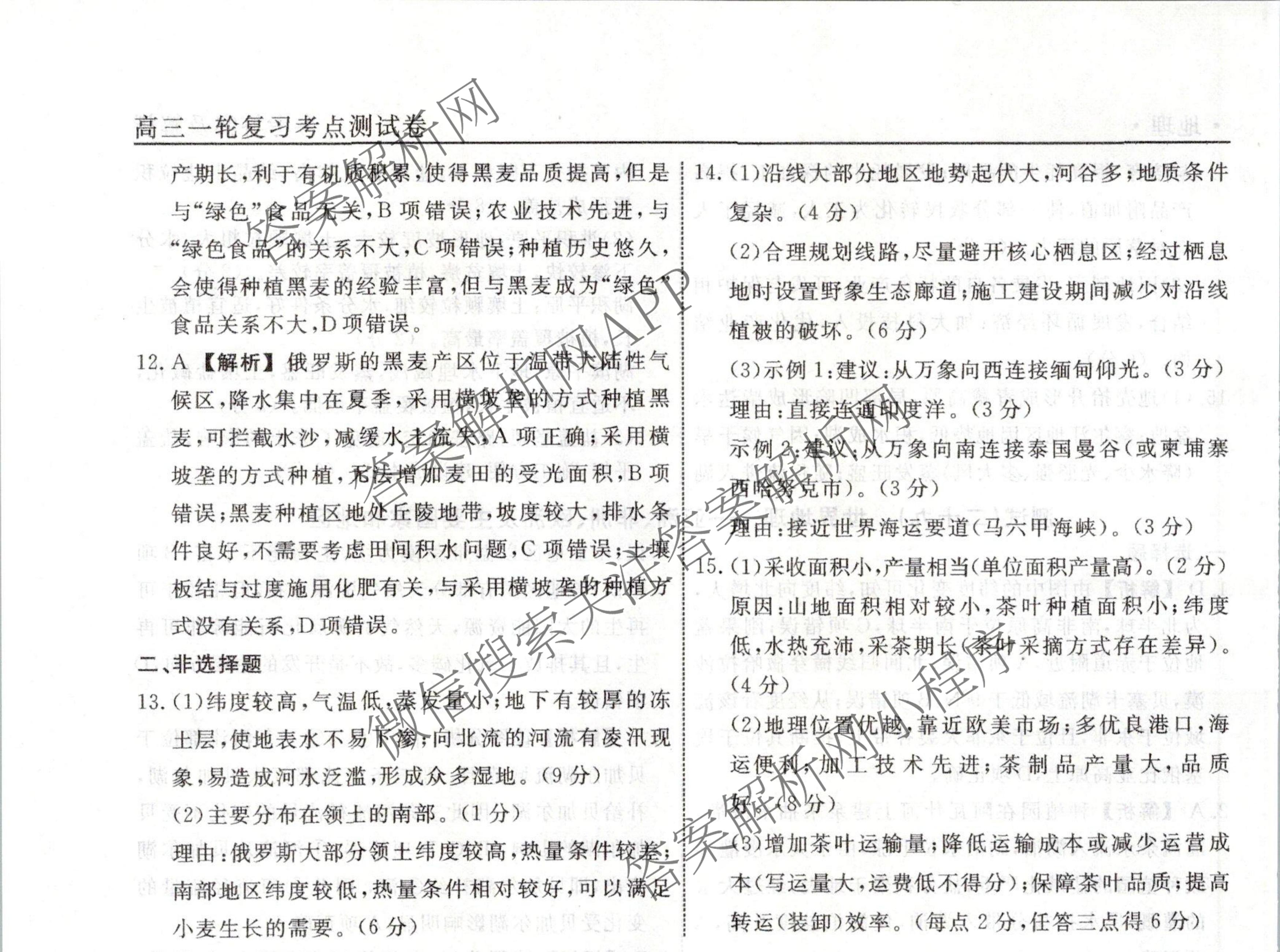 衡水名师卷2023-2024学年度高三一轮复习考点测试卷地理(40分钟实心菱形)(二十九)29答案