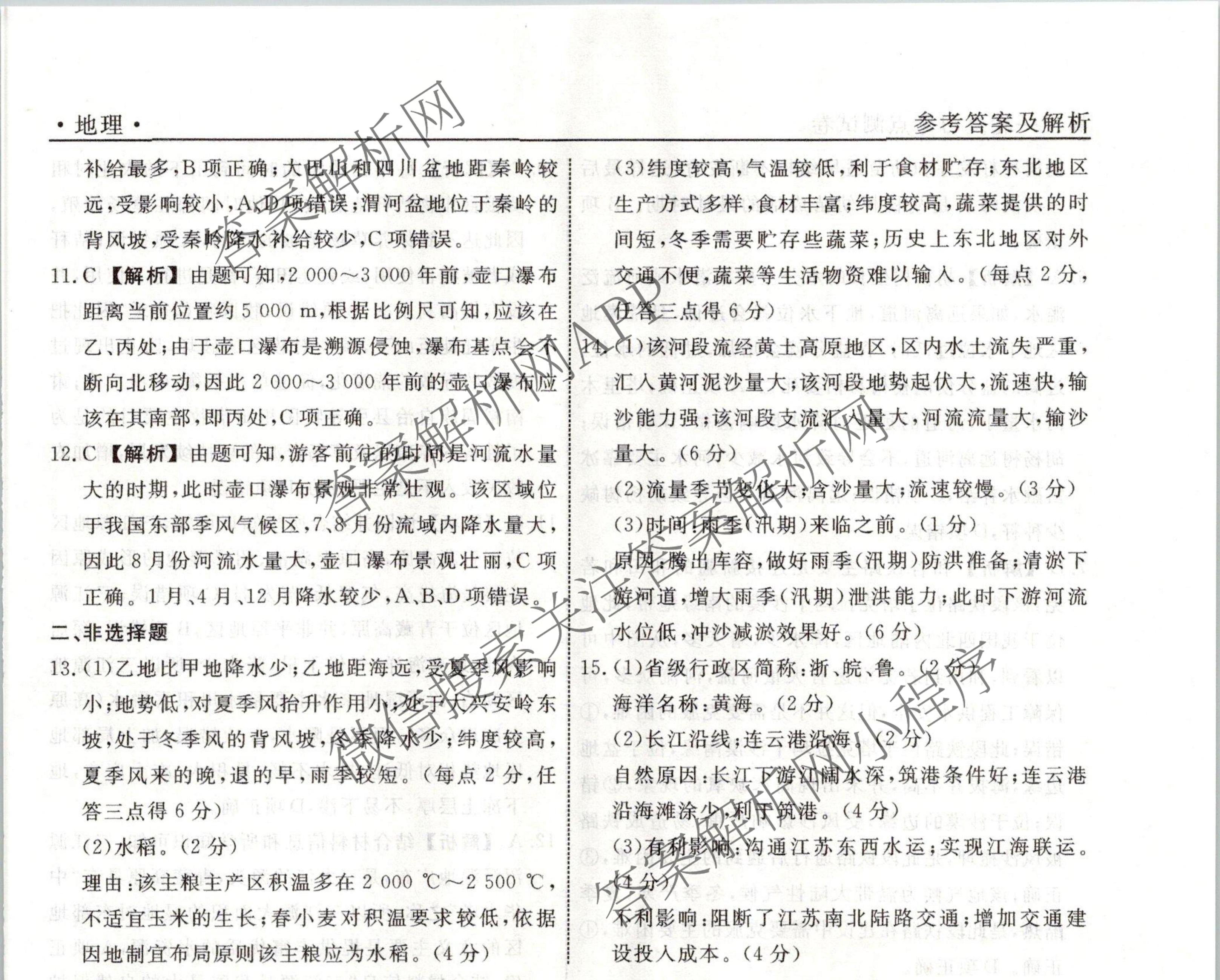 衡水名师卷2023-2024学年度高三一轮复习考点测试卷地理(40分钟实心菱形)(二十七)27答案