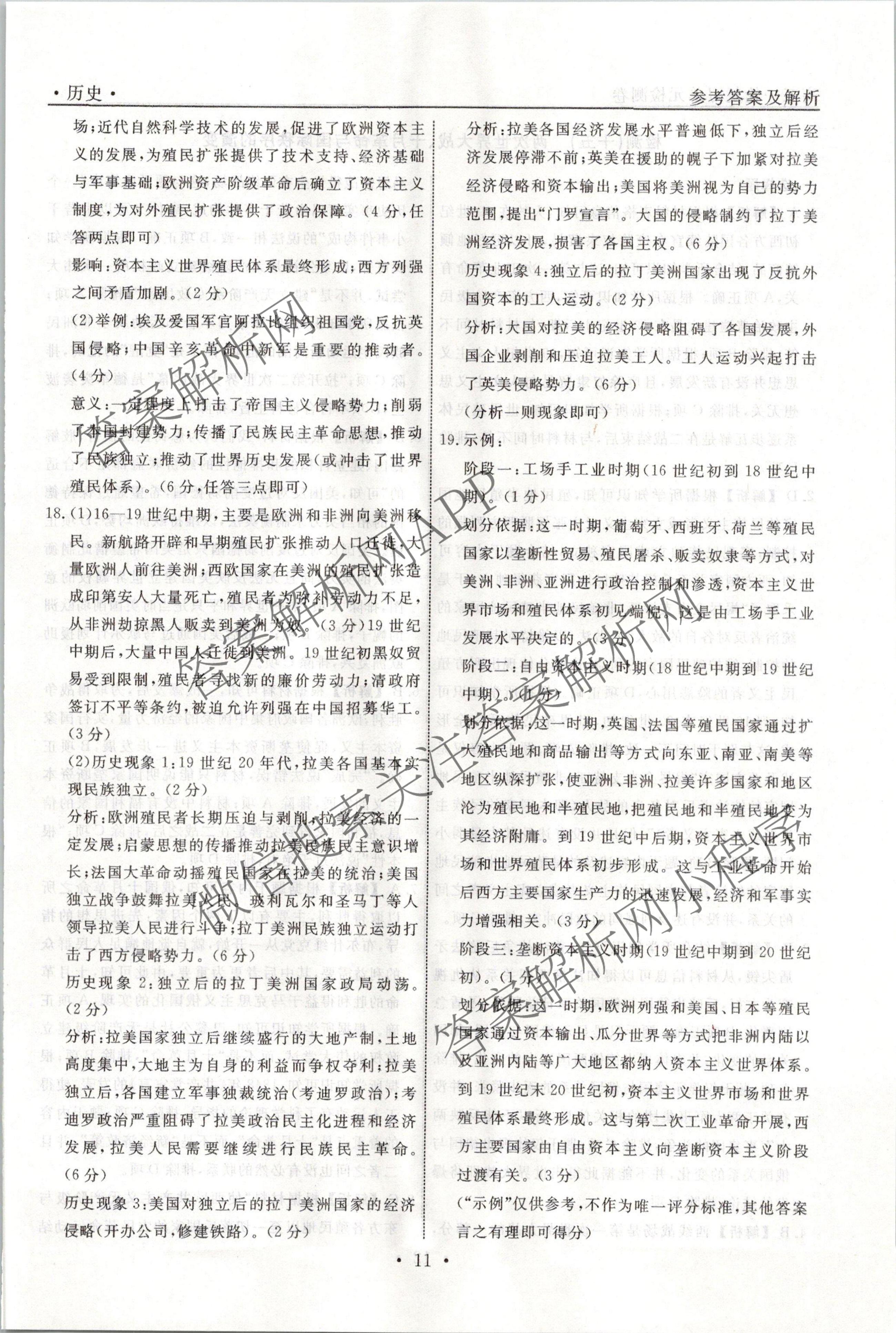 衡水名师卷2023-2024学年度高三一轮复习单元检测卷历史(圆圈)检测(十四)14答案