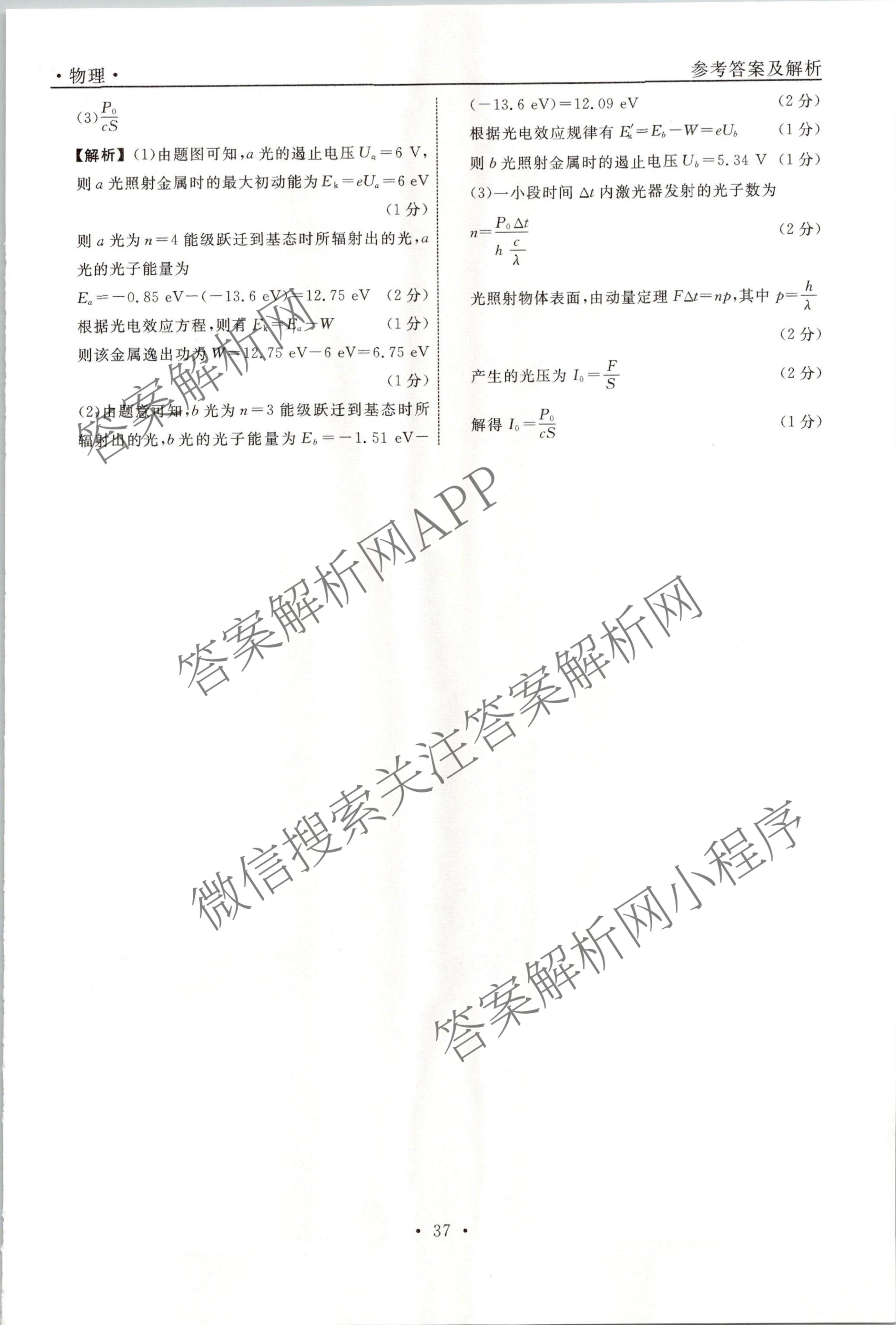 衡水名师卷2023-2024学年度高三一轮复习单元检测卷物理(圆圈)检测(二十)20答案