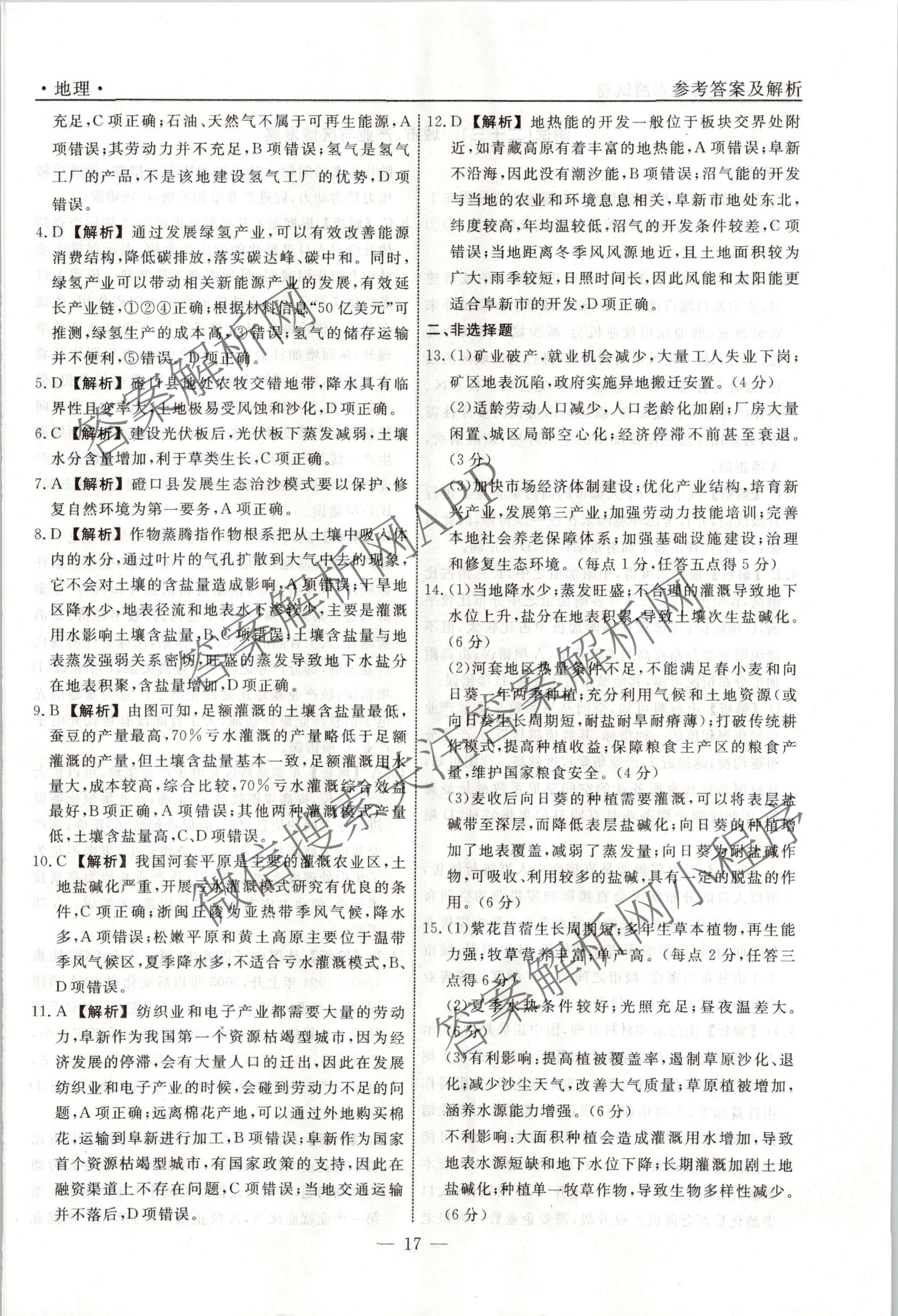 衡水名师卷2023-2024学年度高三一轮复习考点测试卷地理(40分钟实心菱形)(二十二)22答案