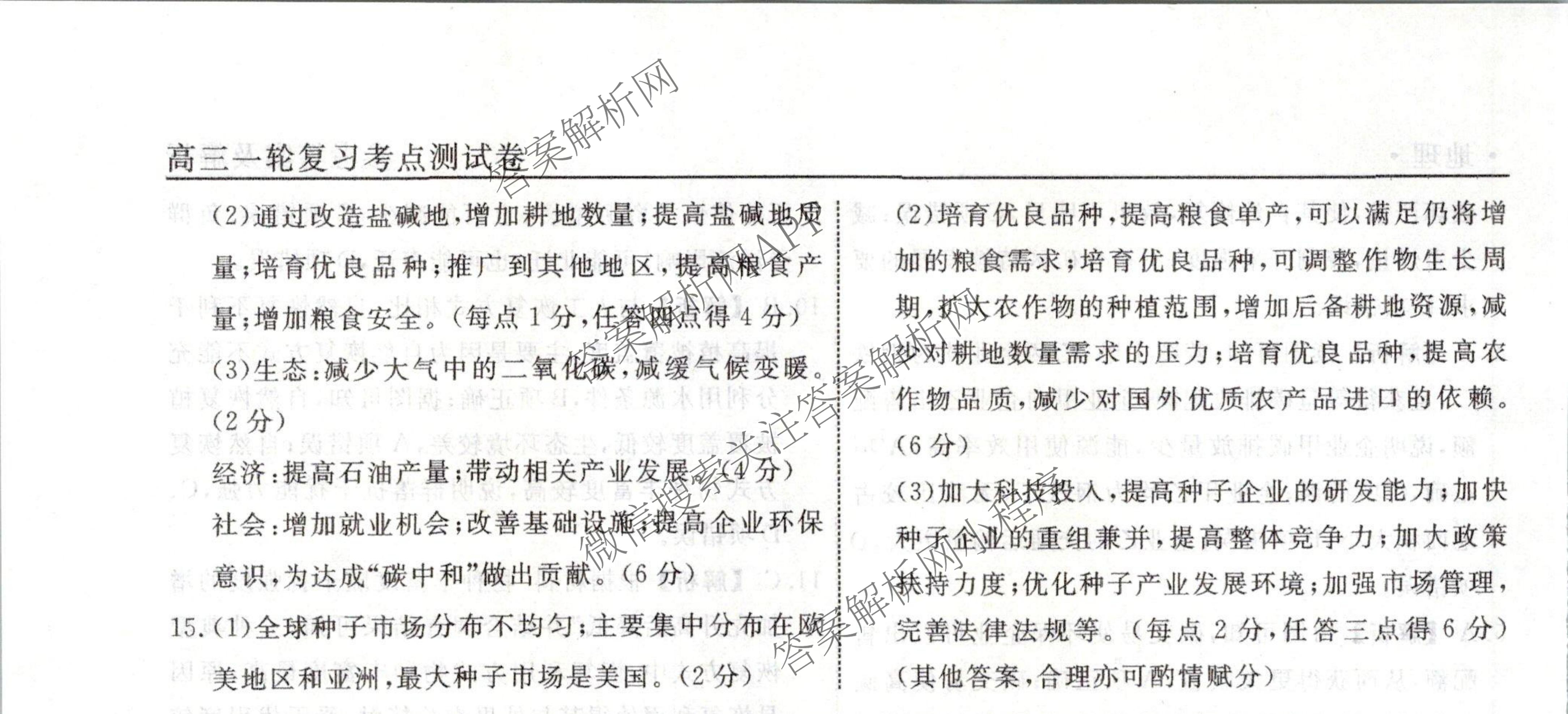 衡水名师卷2023-2024学年度高三一轮复习考点测试卷地理(40分钟实心菱形)(二十六)26答案