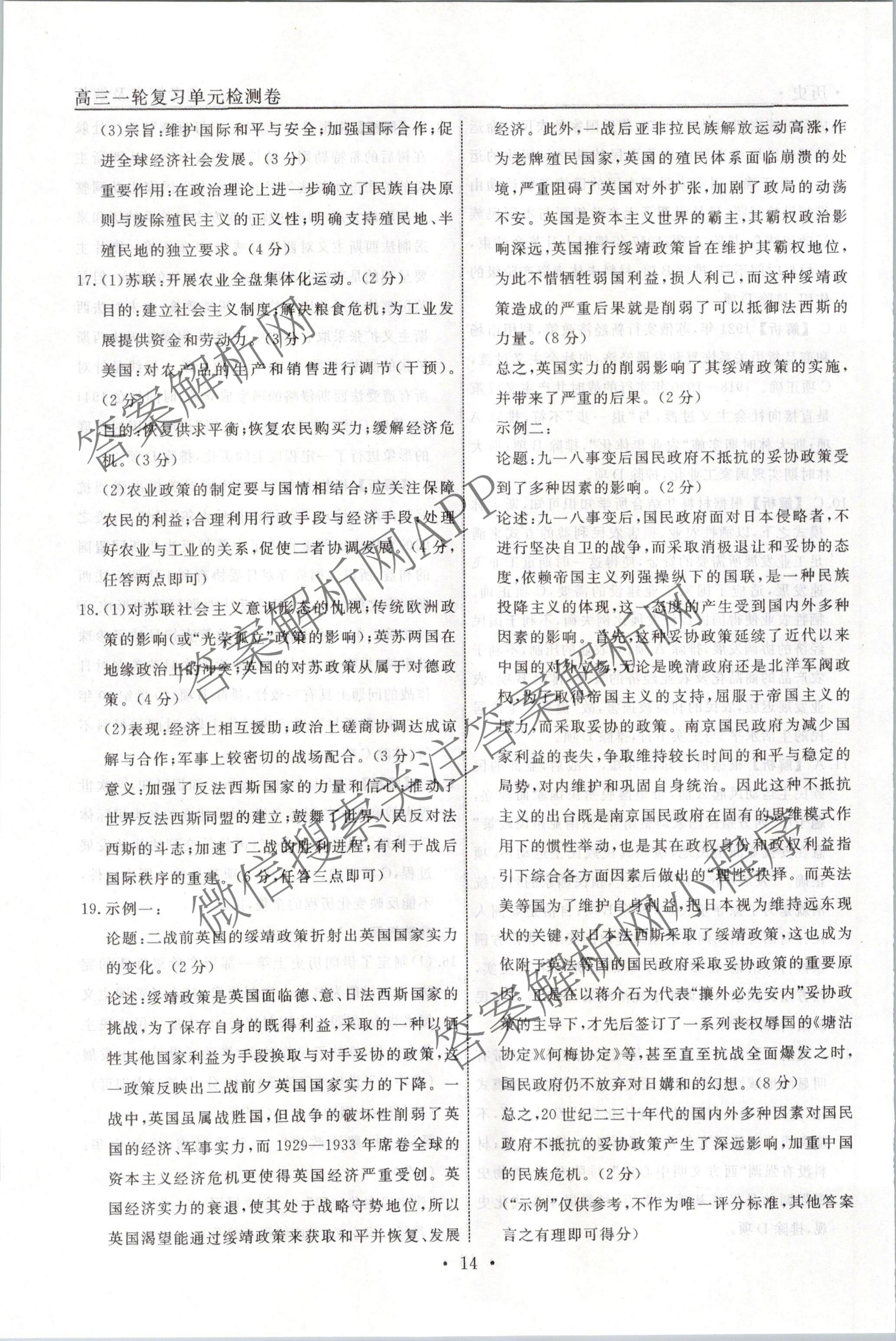 衡水名师卷2023-2024学年度高三一轮复习单元检测卷历史(圆圈)检测(十五)15答案