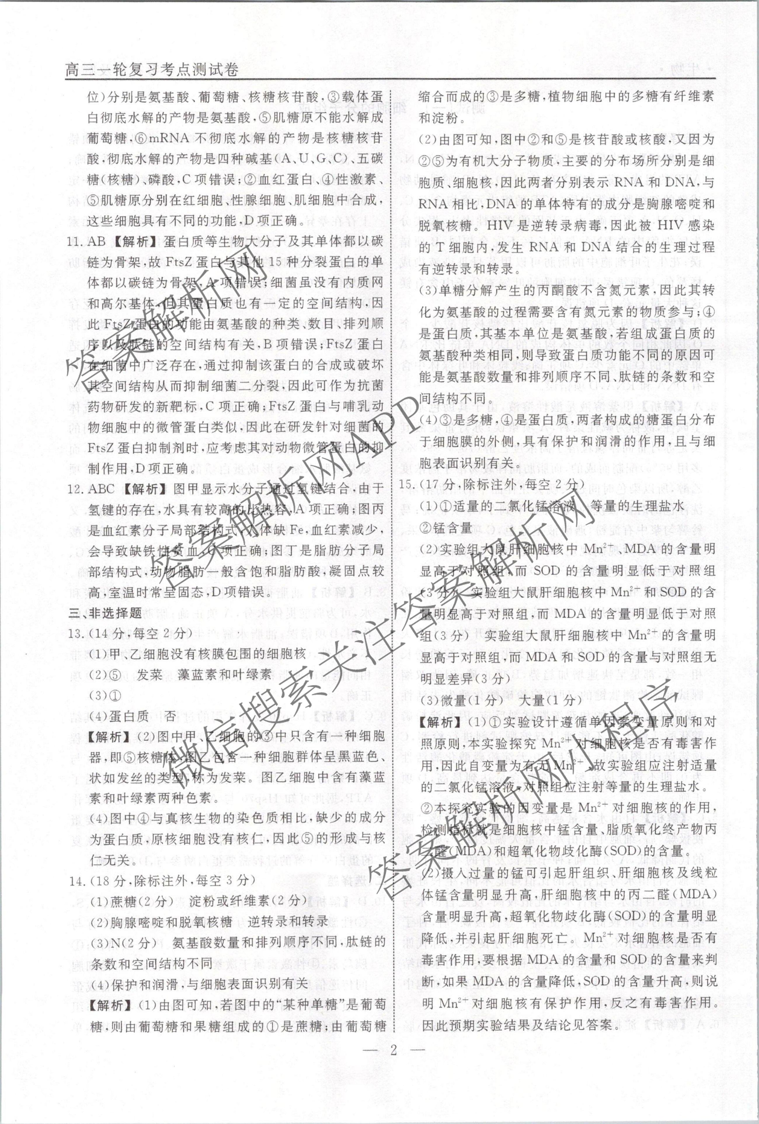 衡水名师卷2023-2024学年度高三一轮复习考点测试卷生物(40分钟双菱形)(一)1答案
