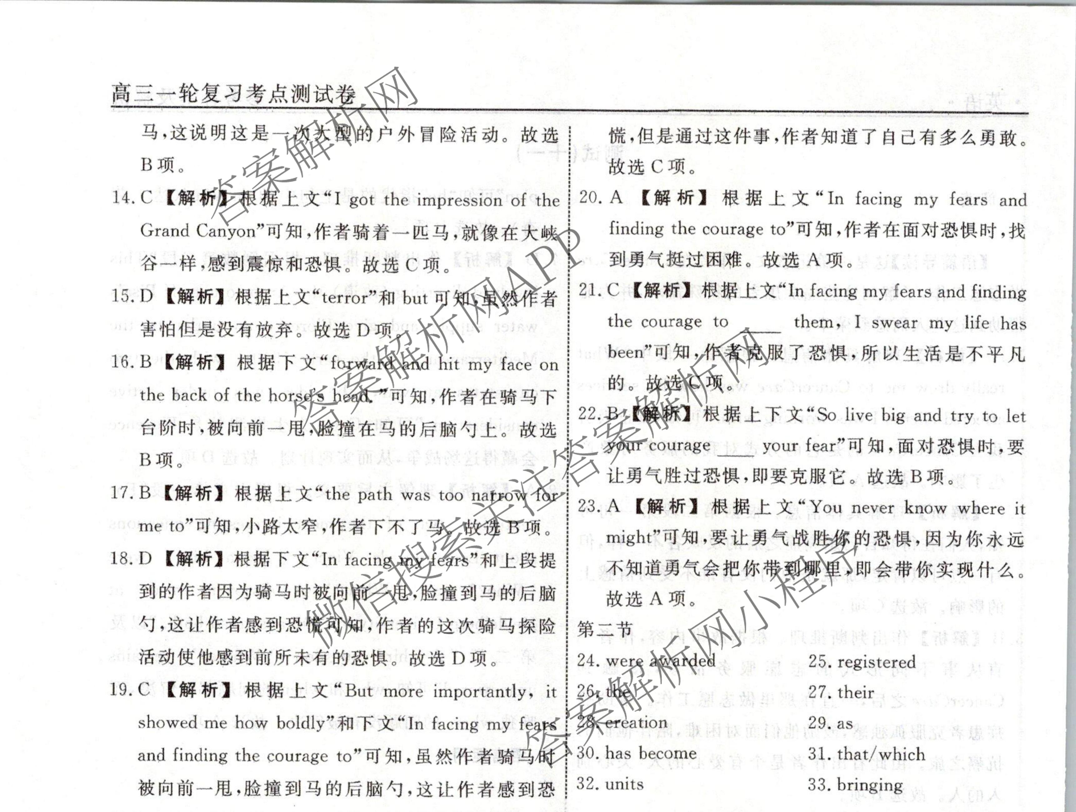 衡水名师卷2023-2024学年度高三一轮复习考点测试卷英语(40分钟实心菱形)(十一)11答案