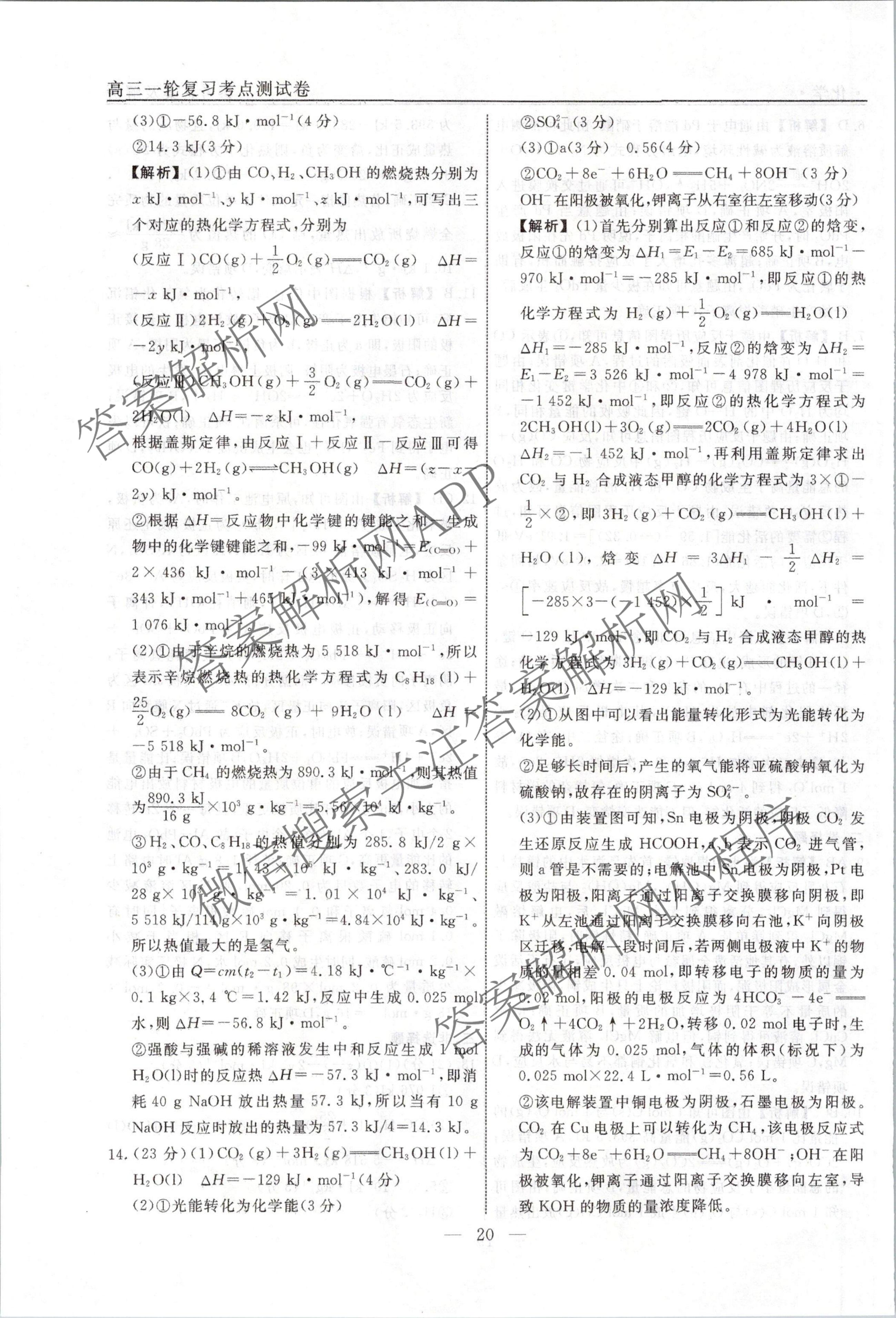 衡水名师卷2023-2024学年度高三一轮复习考点测试卷化学(40分钟双菱形)(二十)20答案