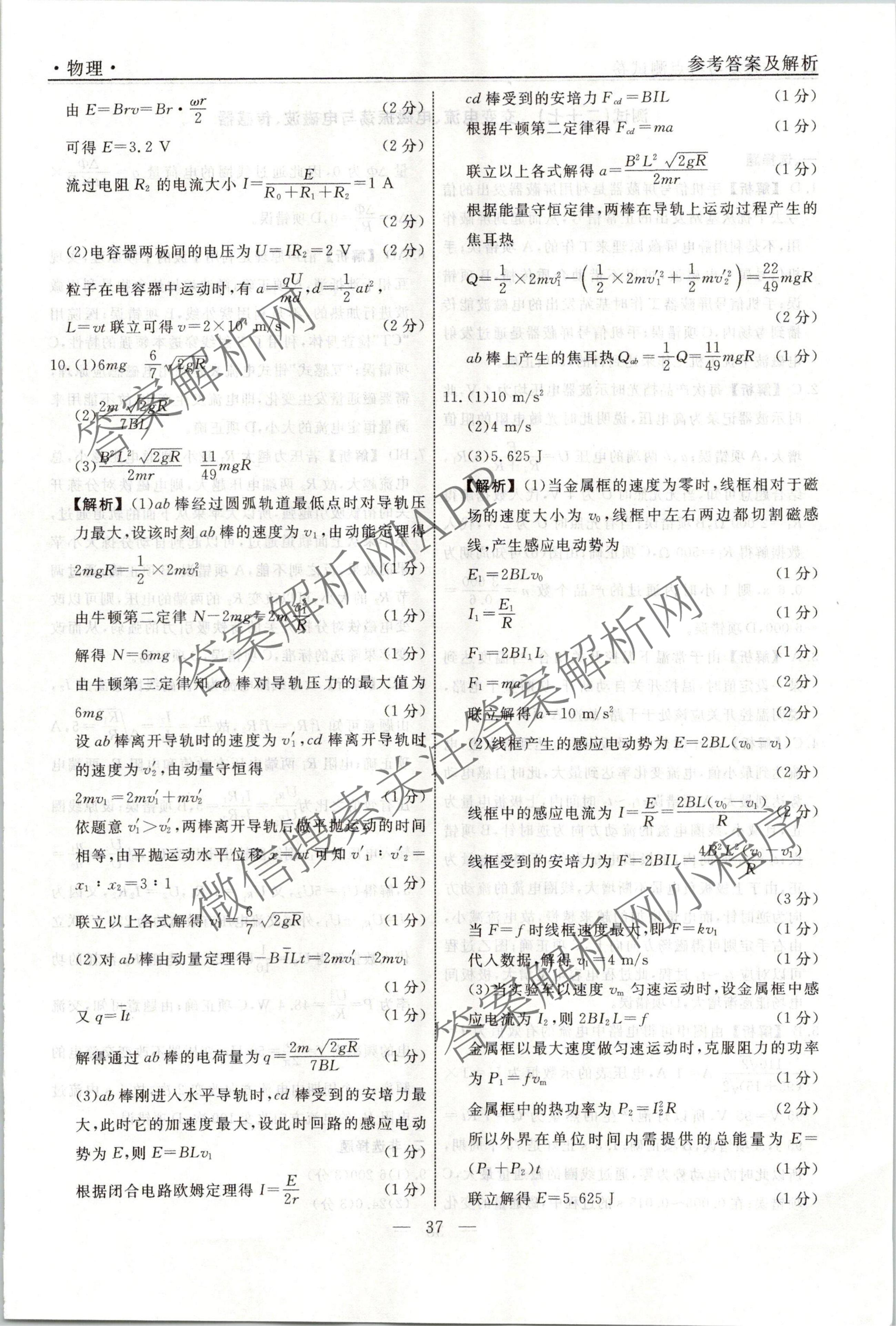 衡水名师卷2023-2024学年度高三一轮复习考点测试卷物理(40分钟实心菱形)(二十六)26答案