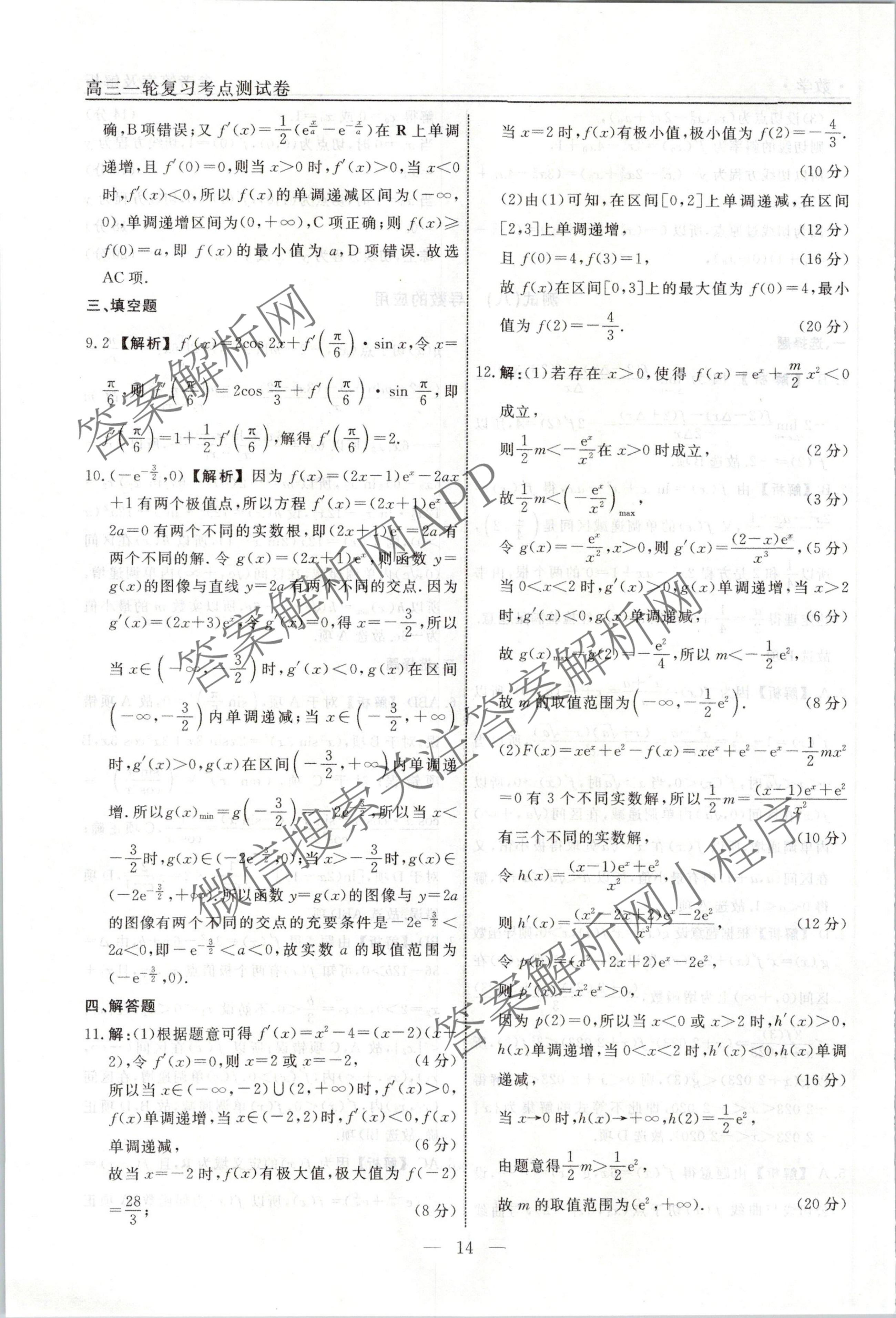 衡水名师卷2023-2024学年度高三一轮复习考点测试卷数学(40分钟实心菱形)(八)8答案