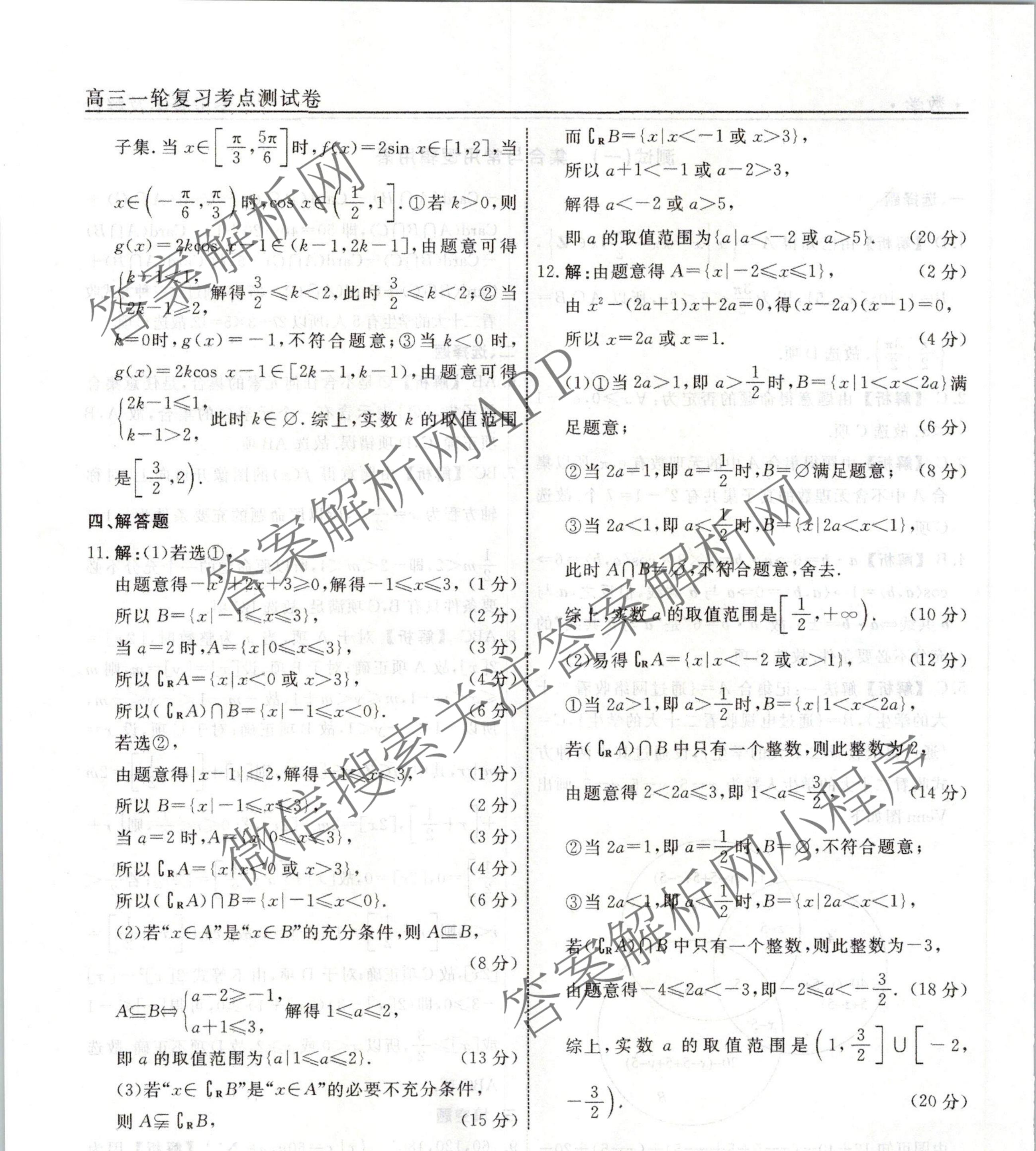 衡水名师卷2023-2024学年度高三一轮复习考点测试卷数学(40分钟实心菱形)(一)1答案