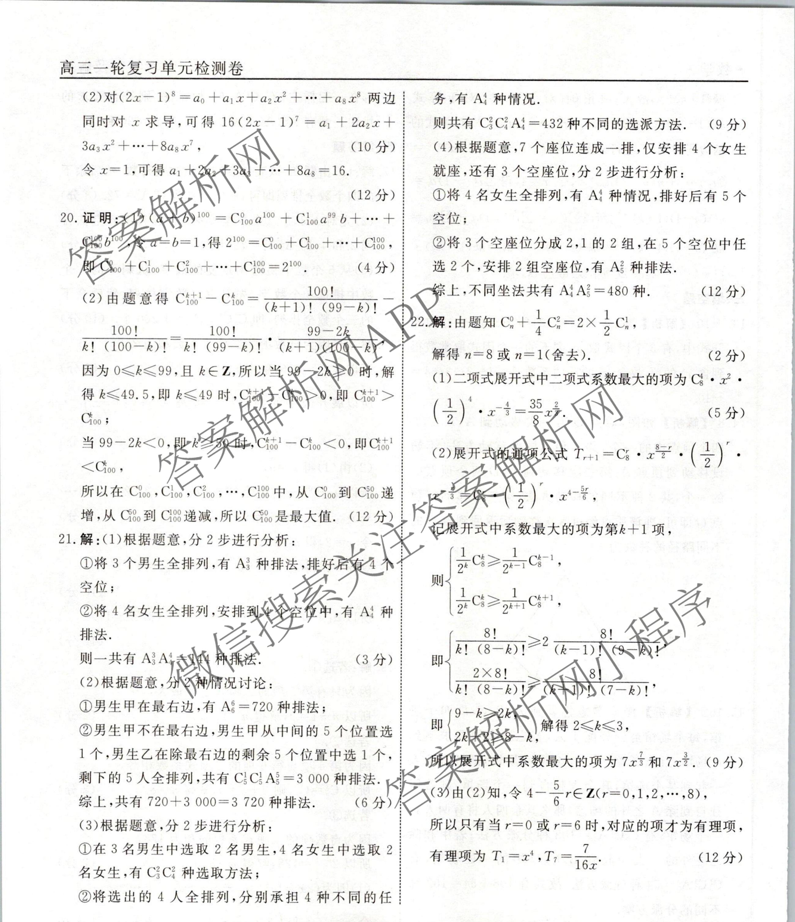 衡水名师卷2023-2024学年度高三一轮复习单元检测卷数学(同心圆)检测(二十)20答案