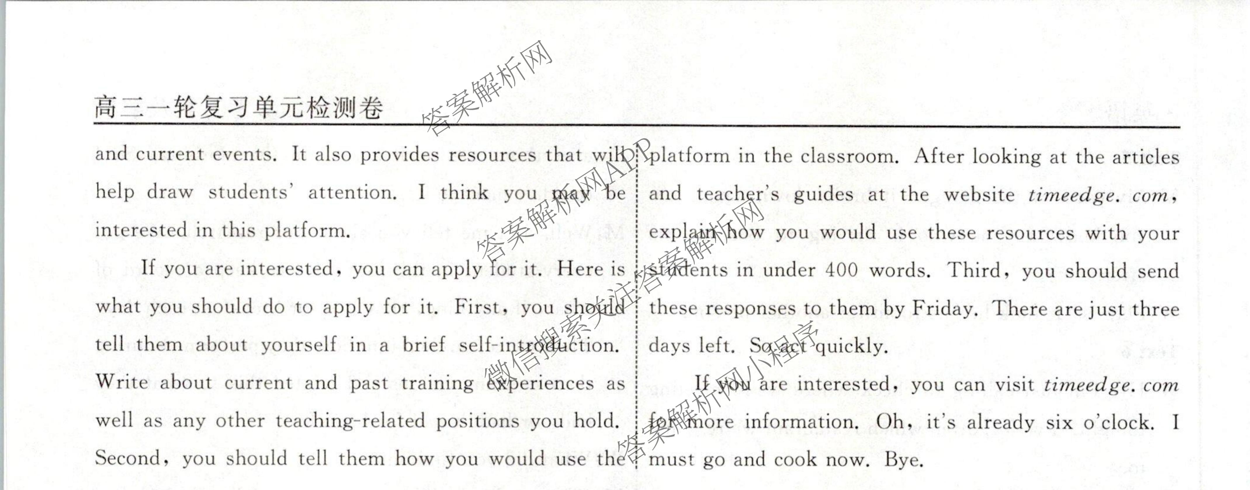 衡水名师卷·2023-2024学年度高三一轮复习单元检测卷·英语(同心圆)·检测(二十)20答案,目前分科卷答案网已经汇总了衡水名师卷·2023-2024学年度高三一轮复习单元检测卷·英语(同心圆)·检测(二十)20答案的各科答案和试卷,获取更多衡水名师卷答案解析,请在关注本站。
