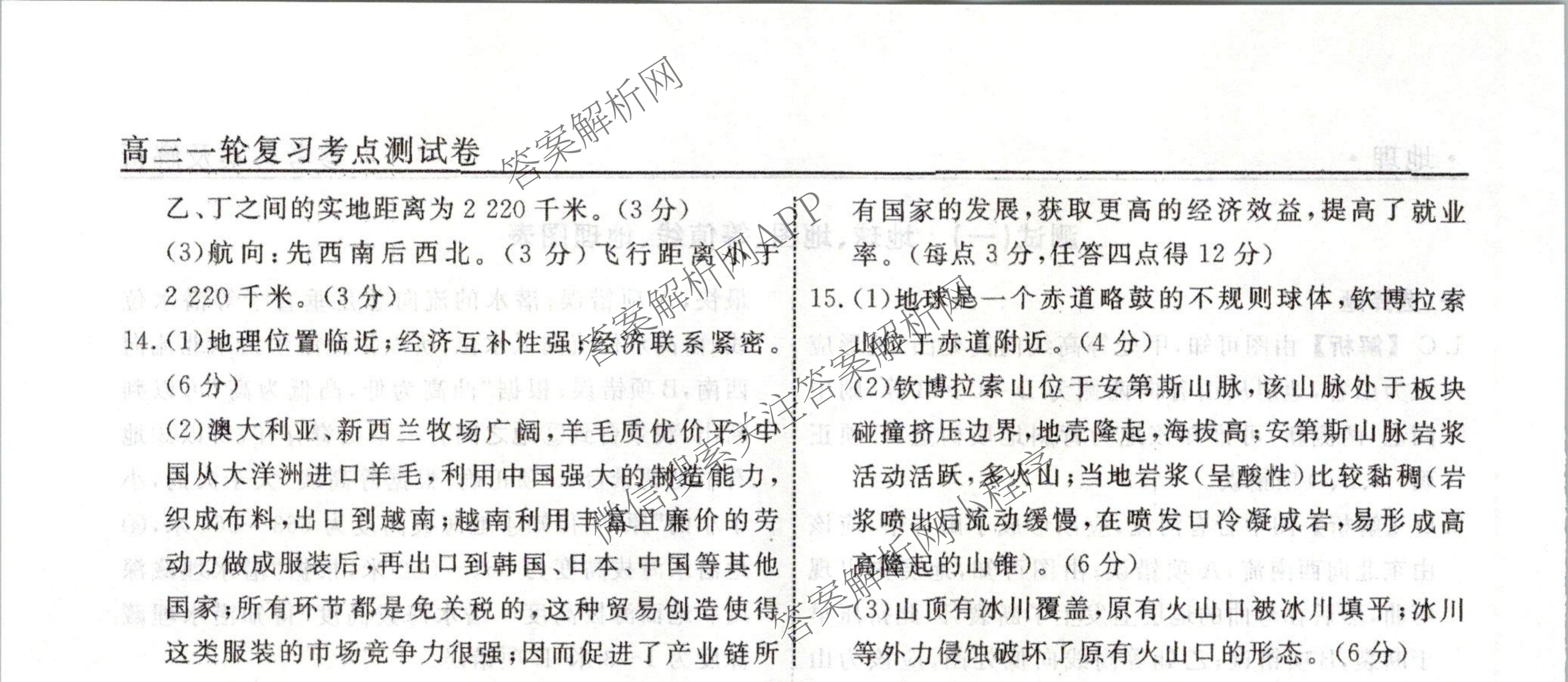 衡水名师卷2023-2024学年度高三一轮复习考点测试卷地理(40分钟实心菱形)(一)1答案