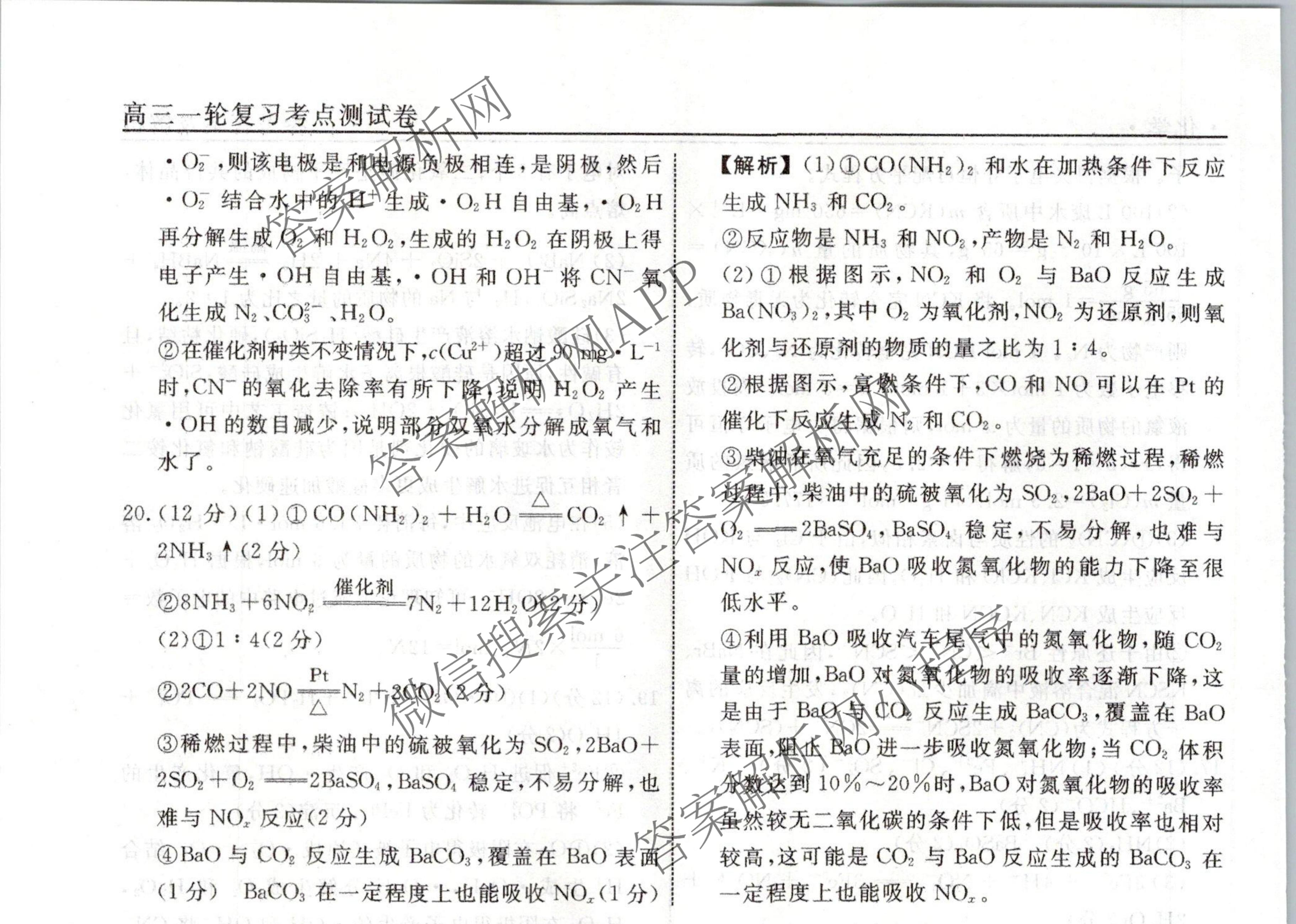 衡水名师卷2023-2024学年度高三一轮复习考点测试卷化学(90分钟圆圈)(三)3答案
