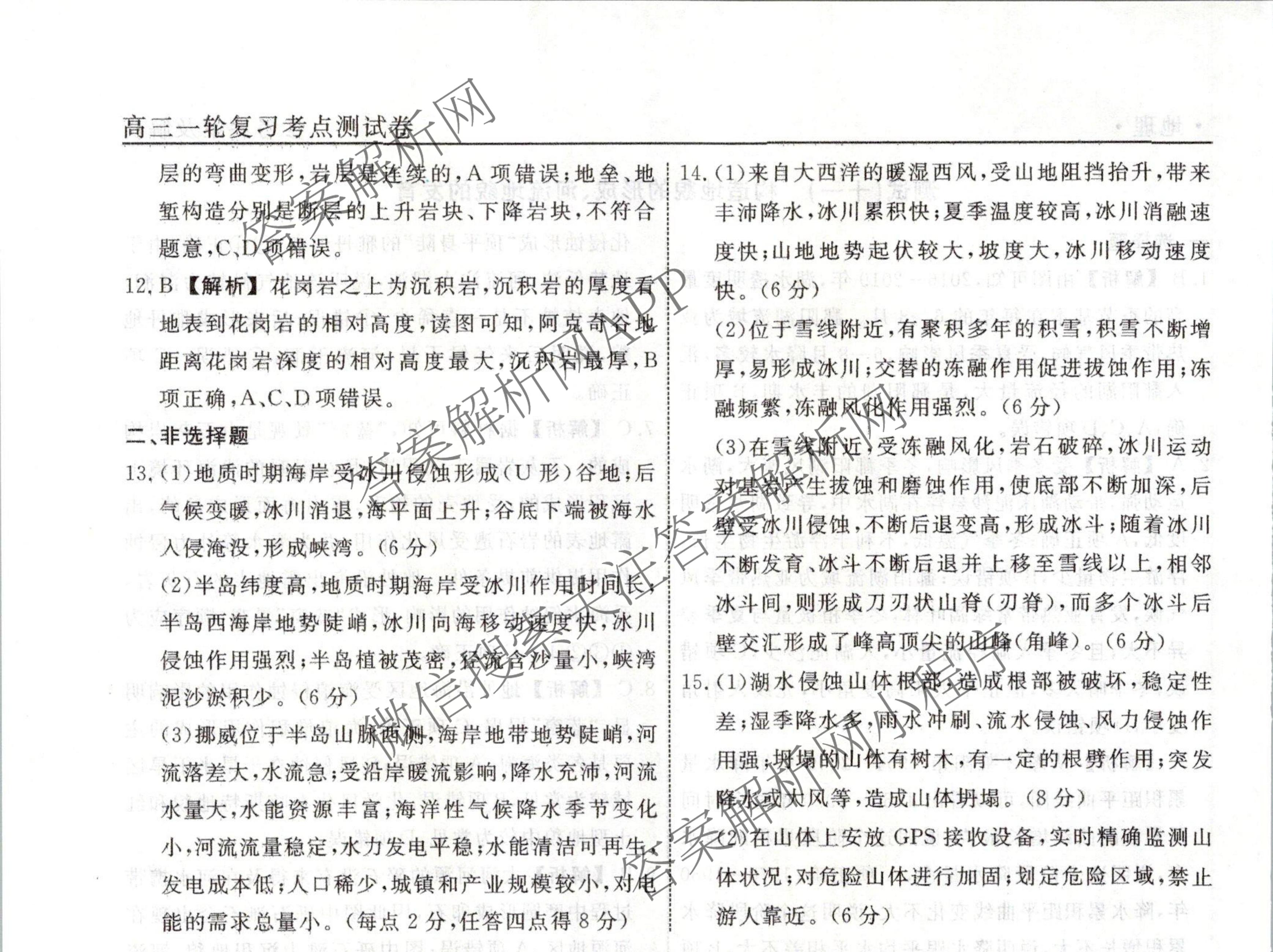 衡水名师卷2023-2024学年度高三一轮复习考点测试卷地理(40分钟实心菱形)(十一)11答案