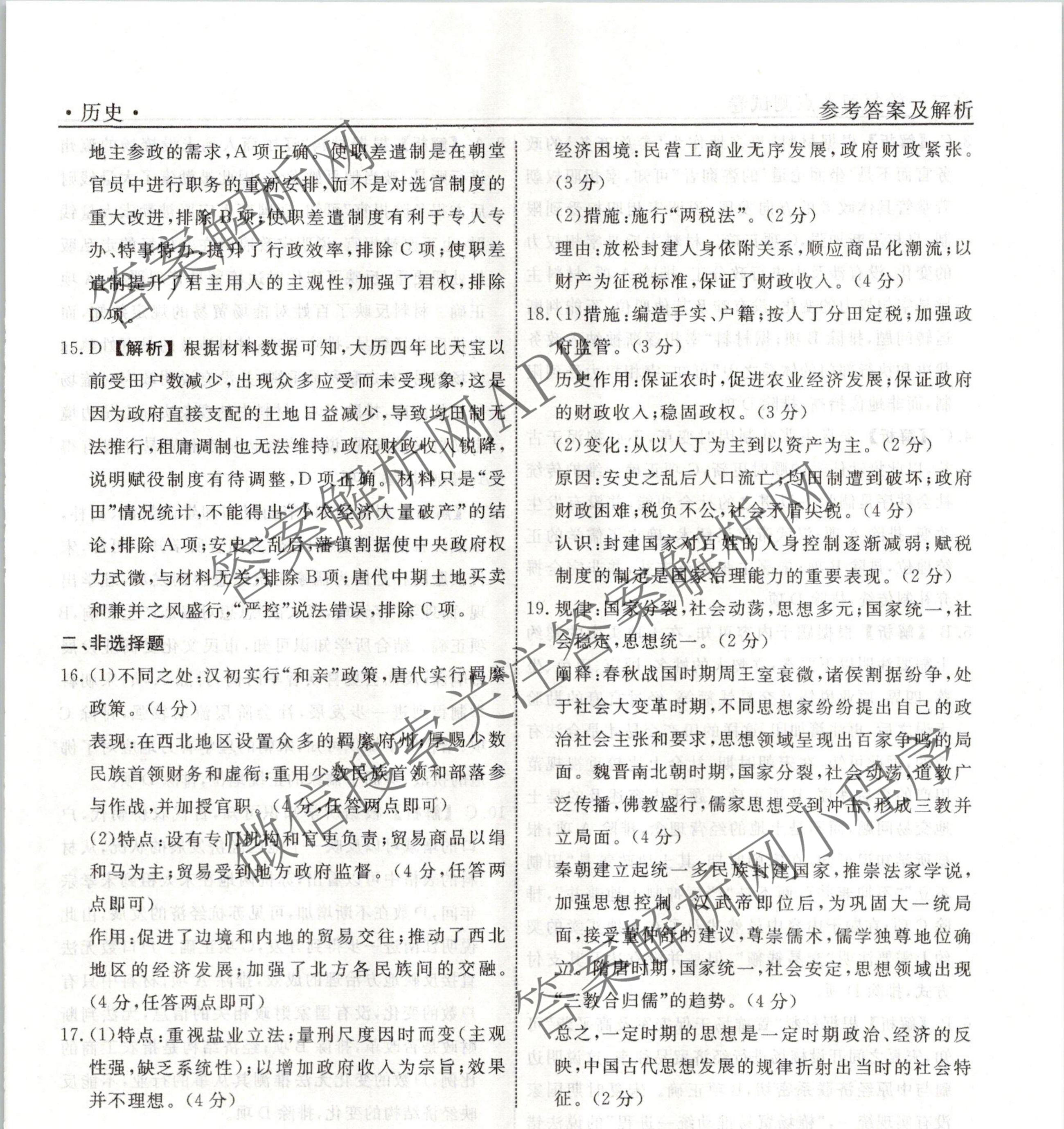 衡水名师卷2023-2024学年度高三一轮复习考点测试卷历史(90分钟圆圈)(二)2答案