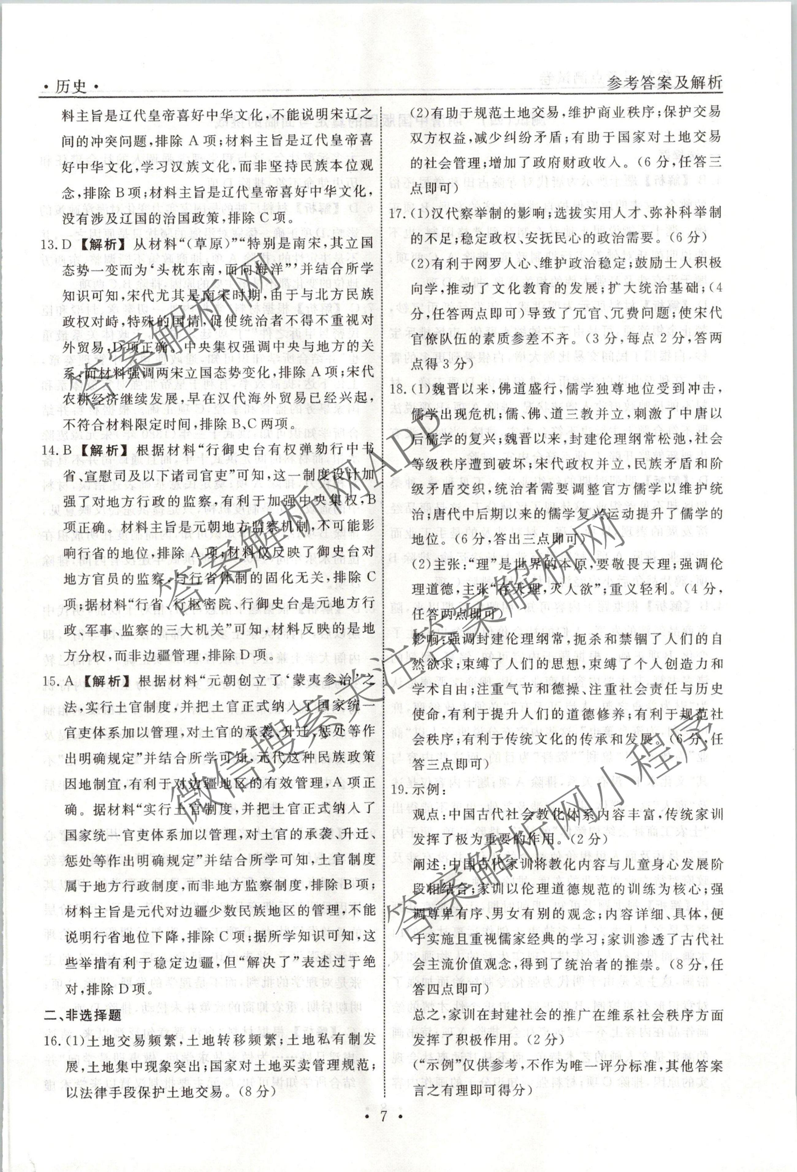 衡水名师卷2023-2024学年度高三一轮复习考点测试卷历史(90分钟圆圈)(三)3答案