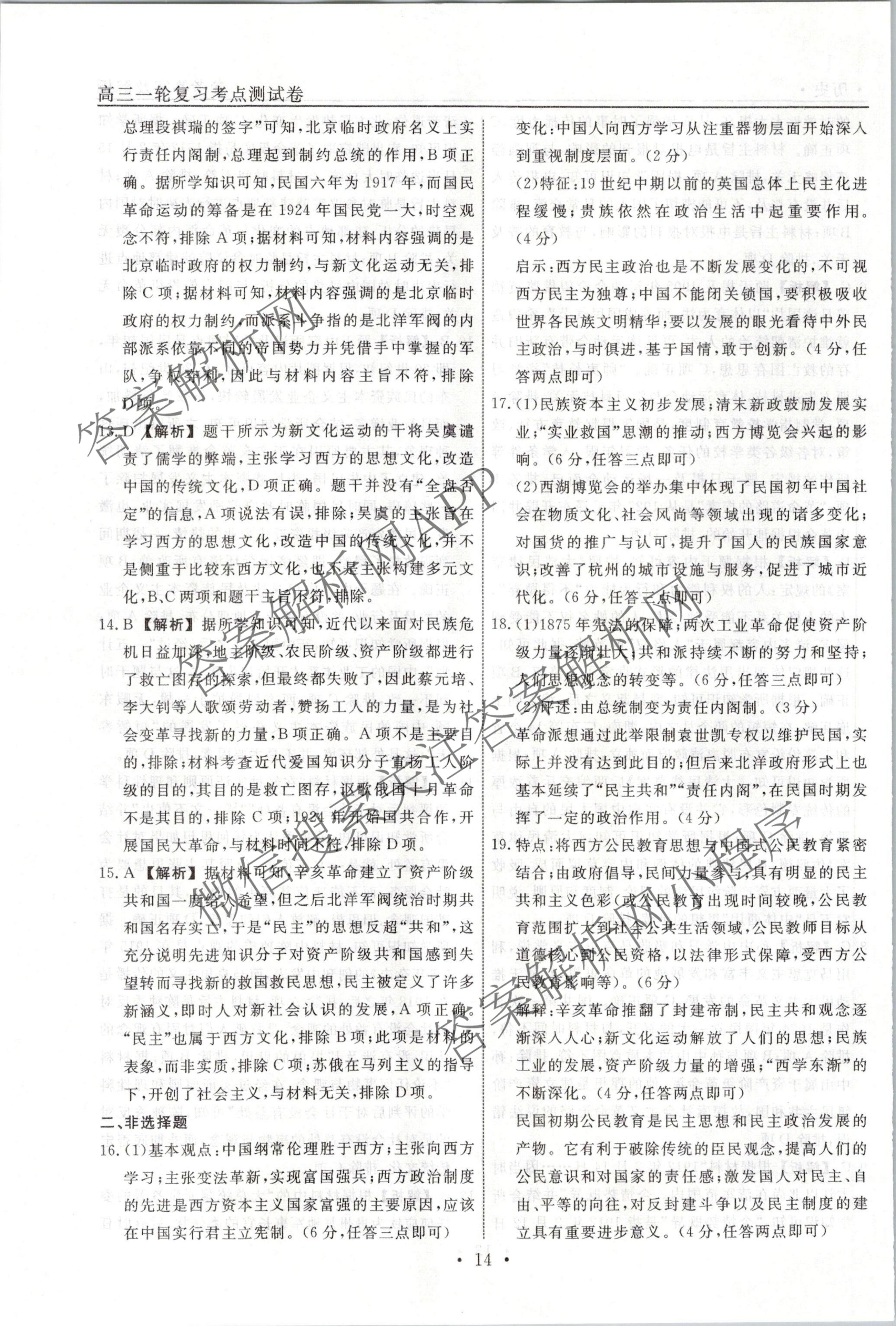 衡水名师卷2023-2024学年度高三一轮复习考点测试卷历史(90分钟圆圈)(六)6答案
