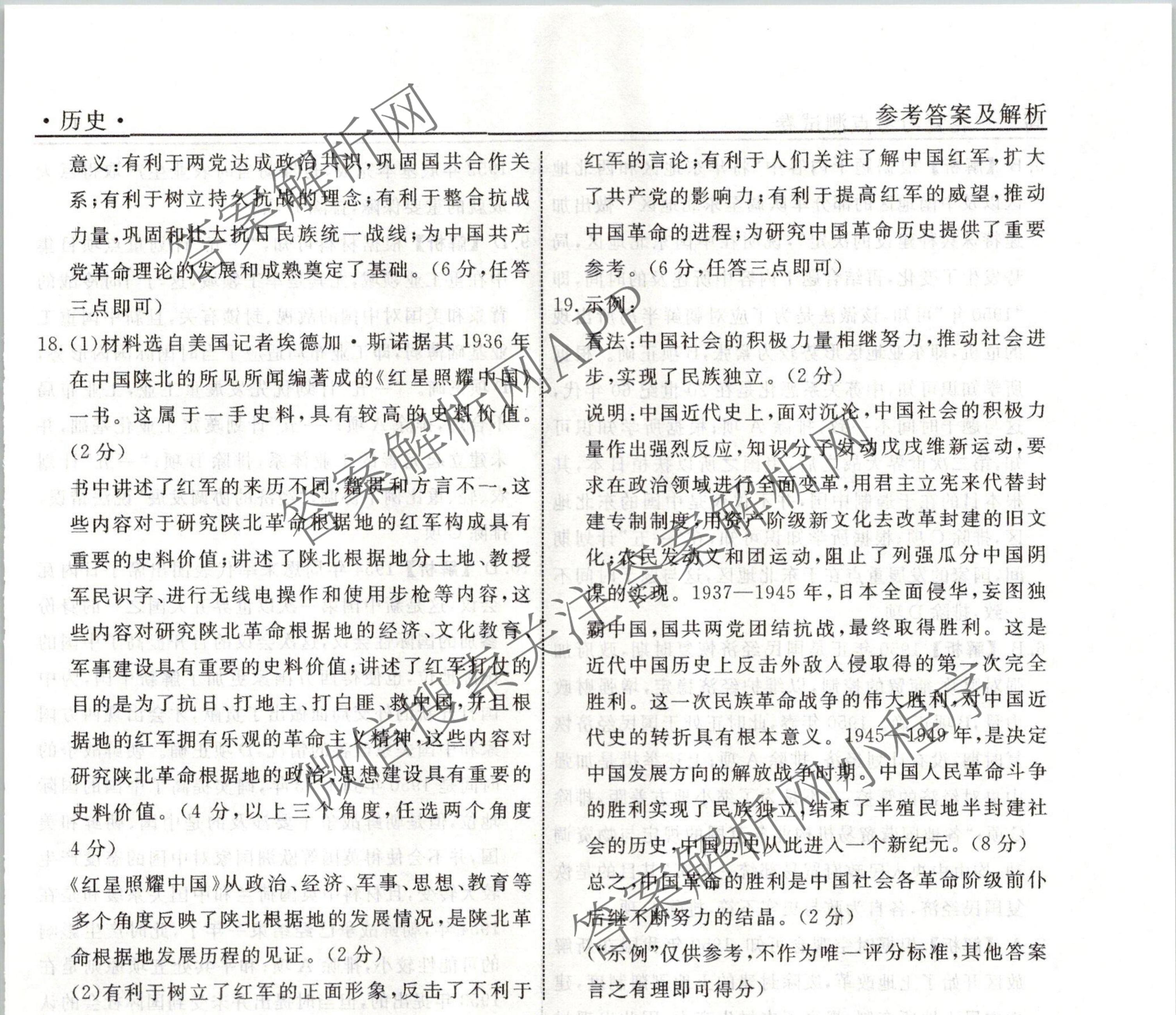 衡水名师卷2023-2024学年度高三一轮复习考点测试卷历史(90分钟圆圈)(七)7答案