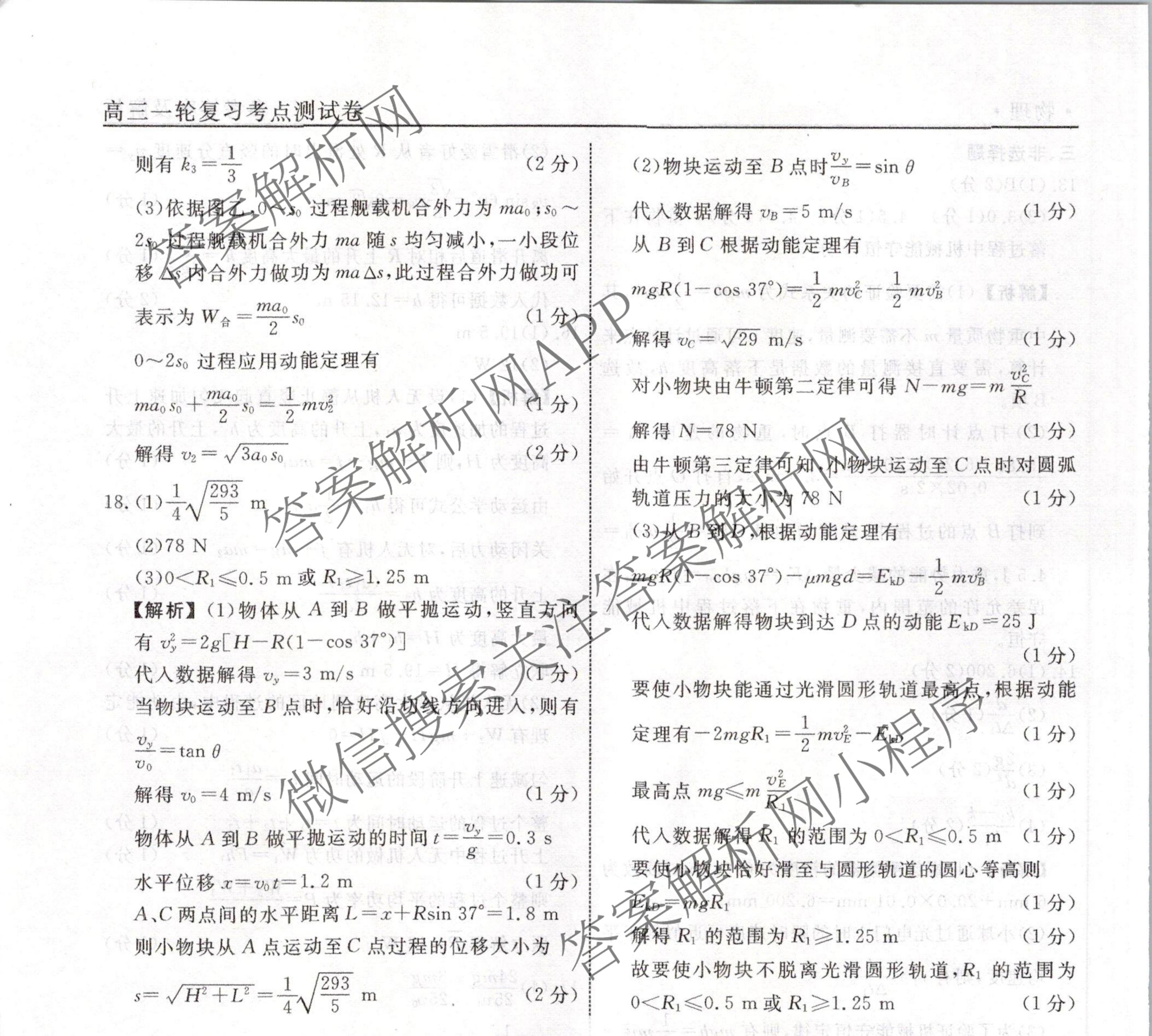 衡水名师卷2023-2024学年度高三一轮复习考点测试卷物理(90分钟圆圈)(六)6答案