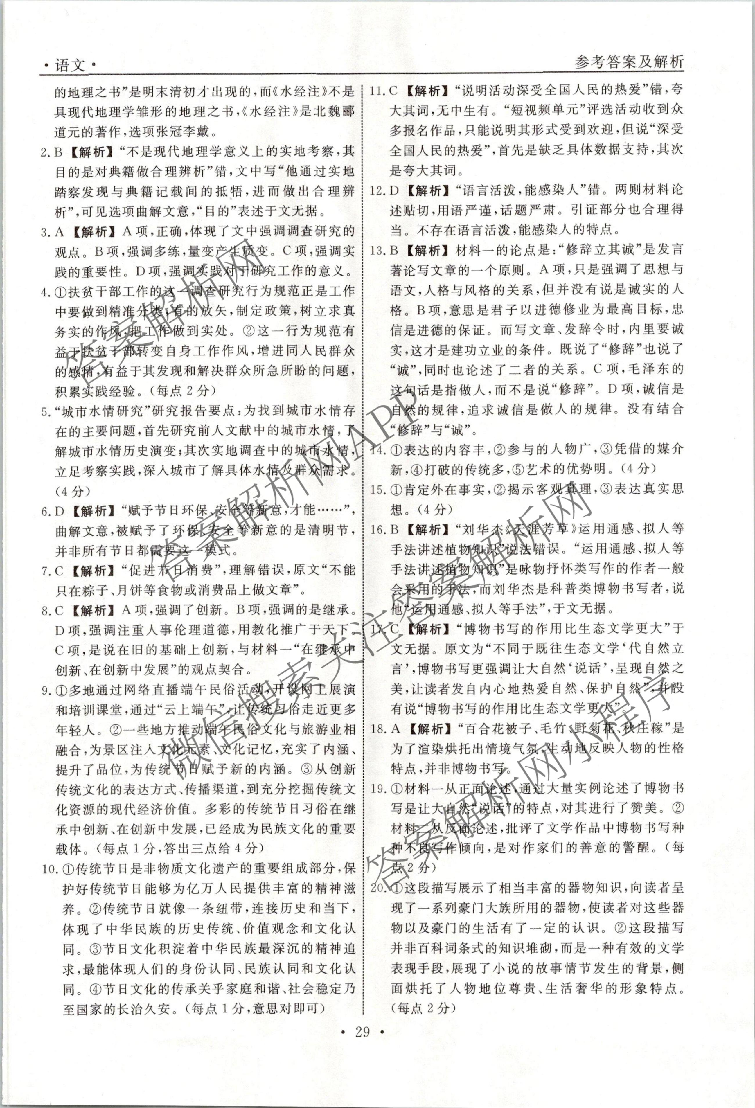 衡水名师卷2023-2024学年度高三一轮复习考点测试卷语文(120分钟同心圆)(十)10答案