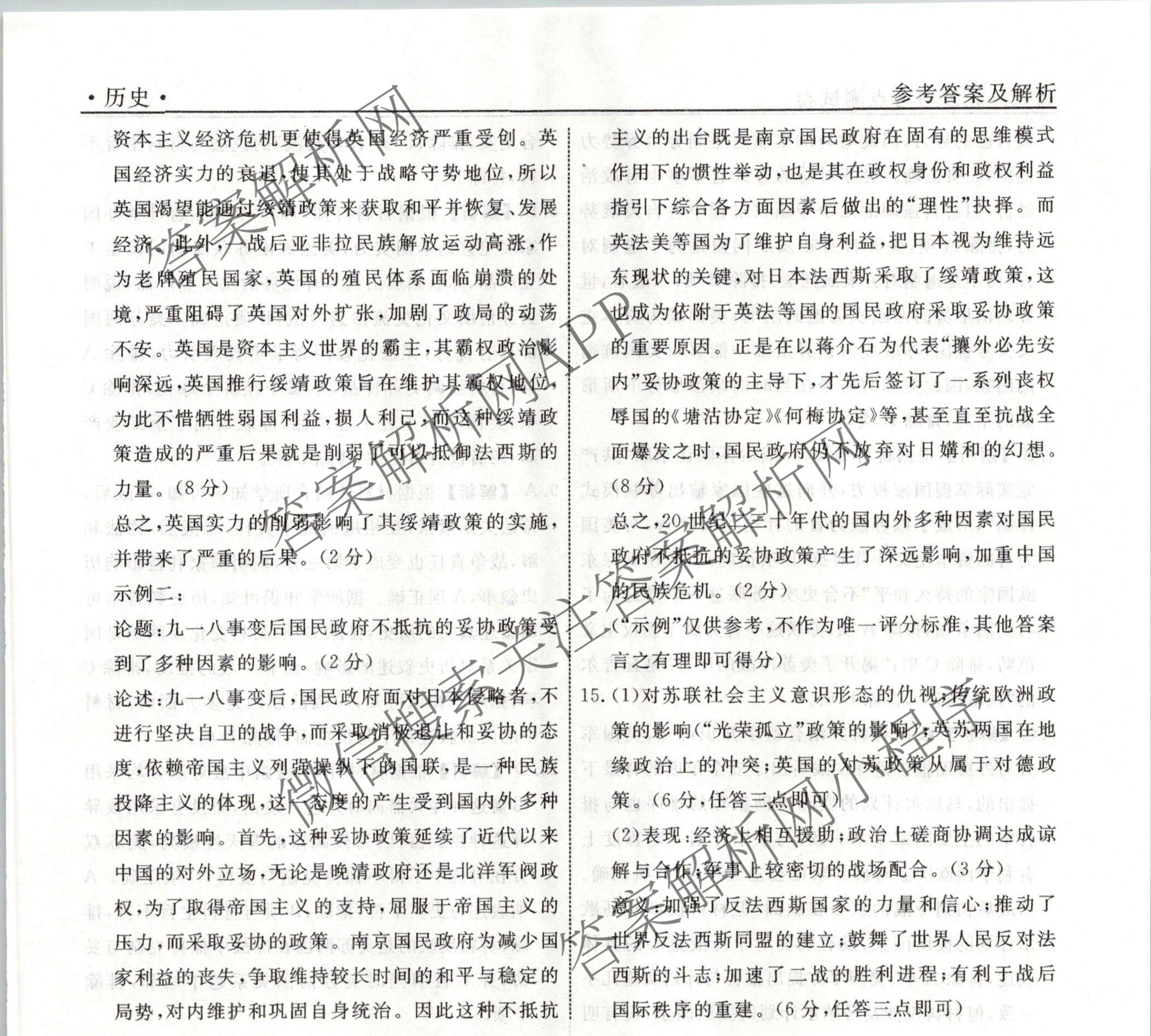 衡水名师卷2023-2024学年度高三一轮复习考点测试卷历史(40分钟实心菱形)(二十四)24答案