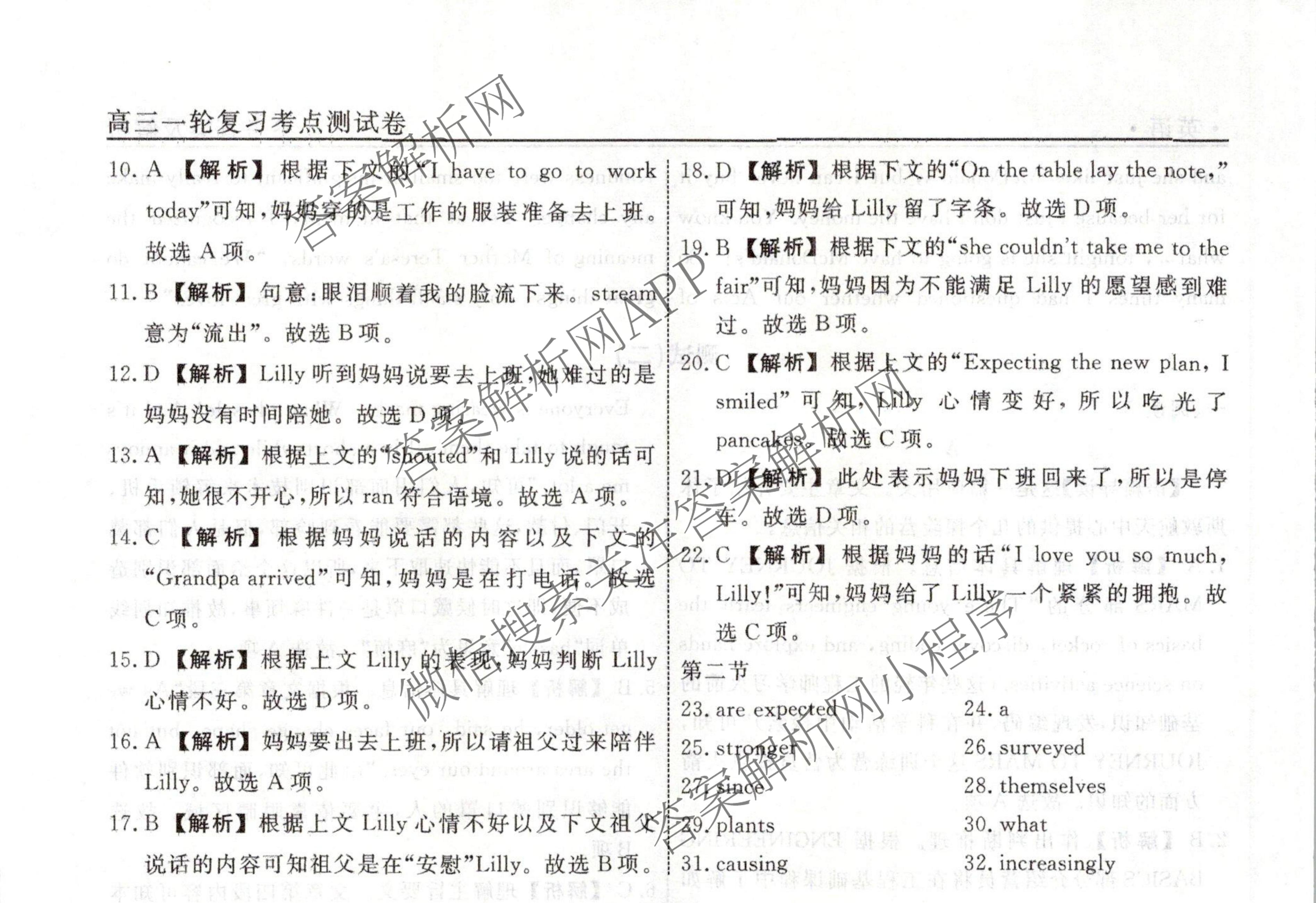 衡水名师卷2023-2024学年度高三一轮复习考点测试卷英语(40分钟实心菱形)(二)2答案