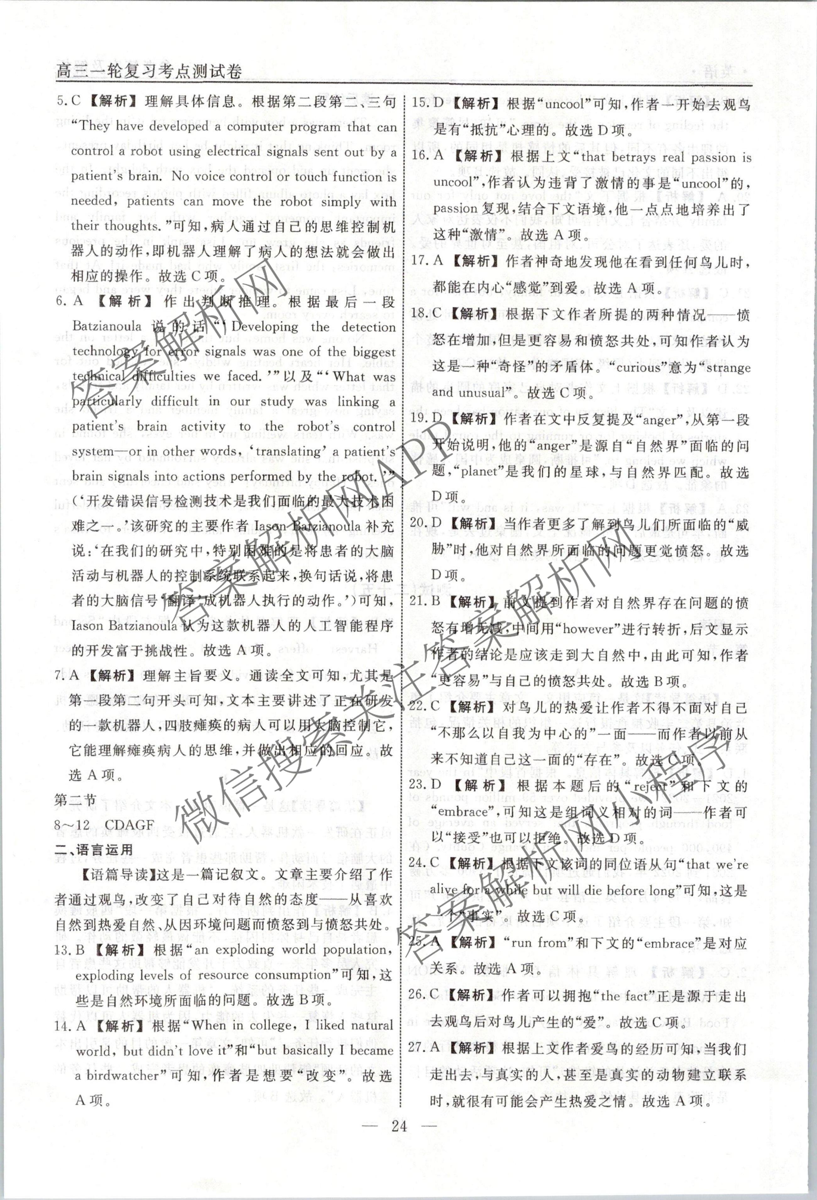 衡水名师卷2023-2024学年度高三一轮复习考点测试卷英语(40分钟实心菱形)(二十五)25答案
