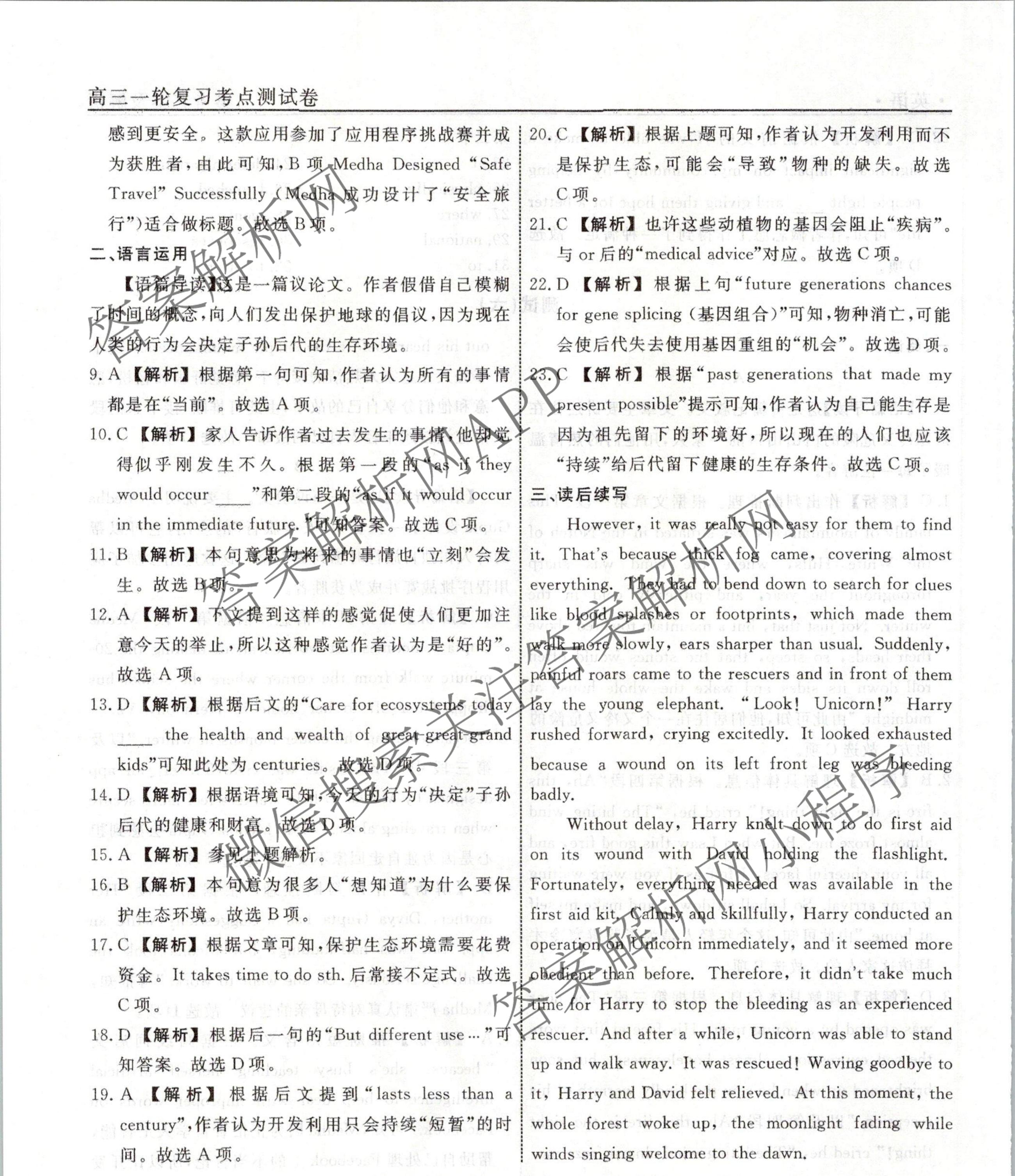 衡水名师卷2023-2024学年度高三一轮复习考点测试卷英语(40分钟实心菱形)(六)6答案