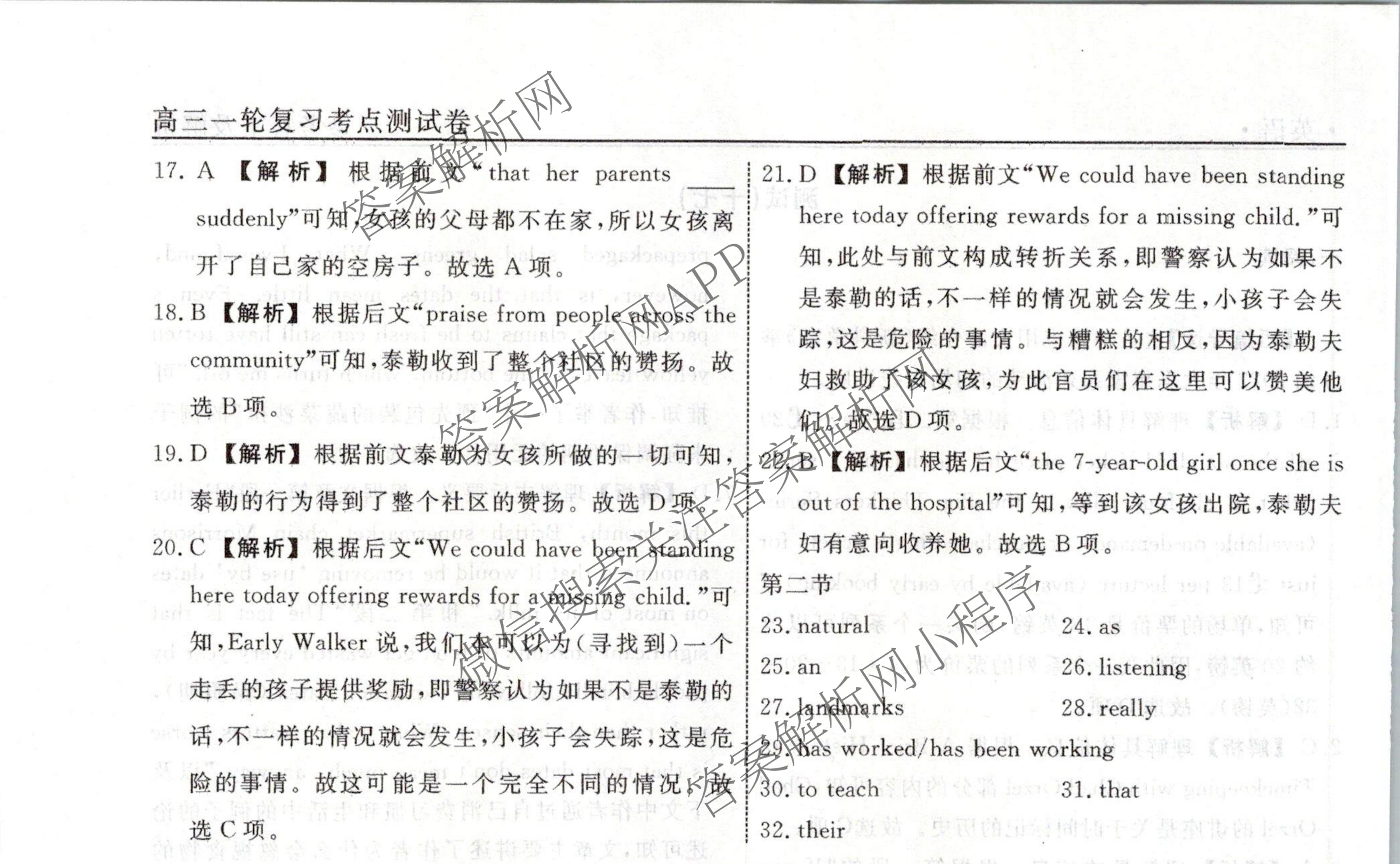 衡水名师卷2023-2024学年度高三一轮复习考点测试卷英语(40分钟实心菱形)(十七)17答案