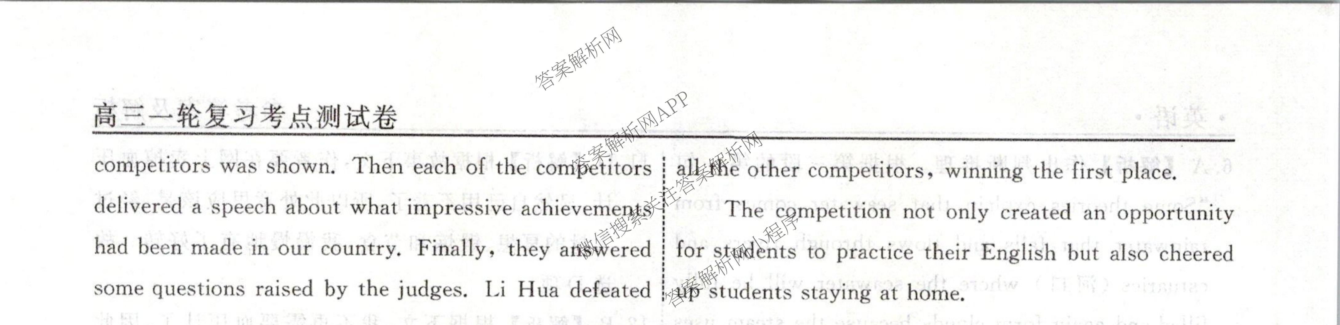 衡水名师卷2023-2024学年度高三一轮复习考点测试卷英语(40分钟实心菱形)(二十二)22答案