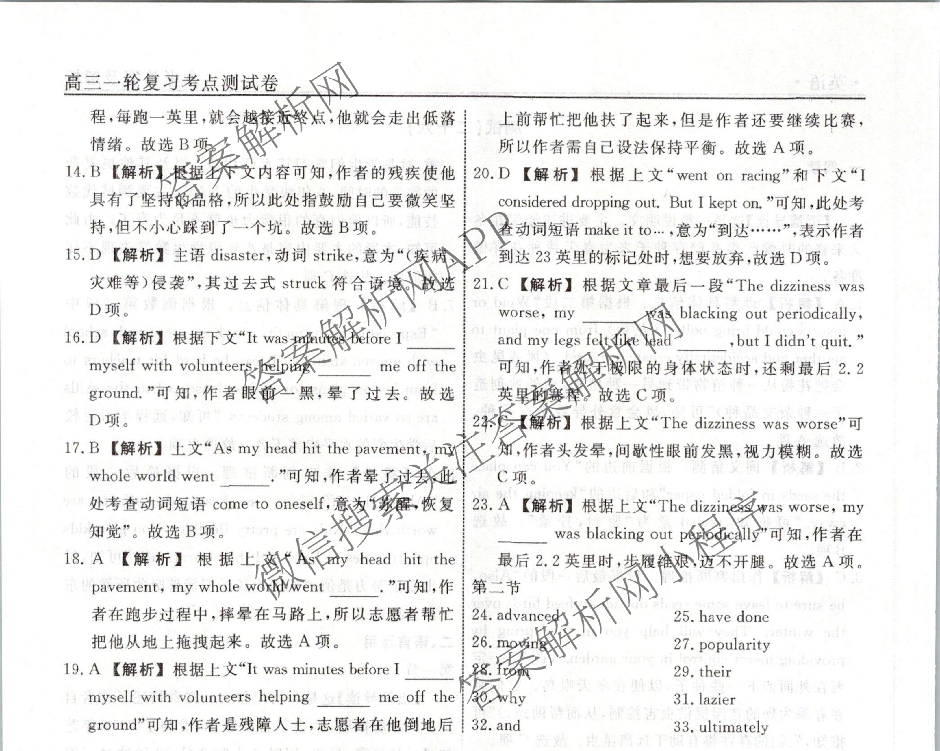 衡水名师卷2023-2024学年度高三一轮复习考点测试卷英语(40分钟实心菱形)(二十六)26答案