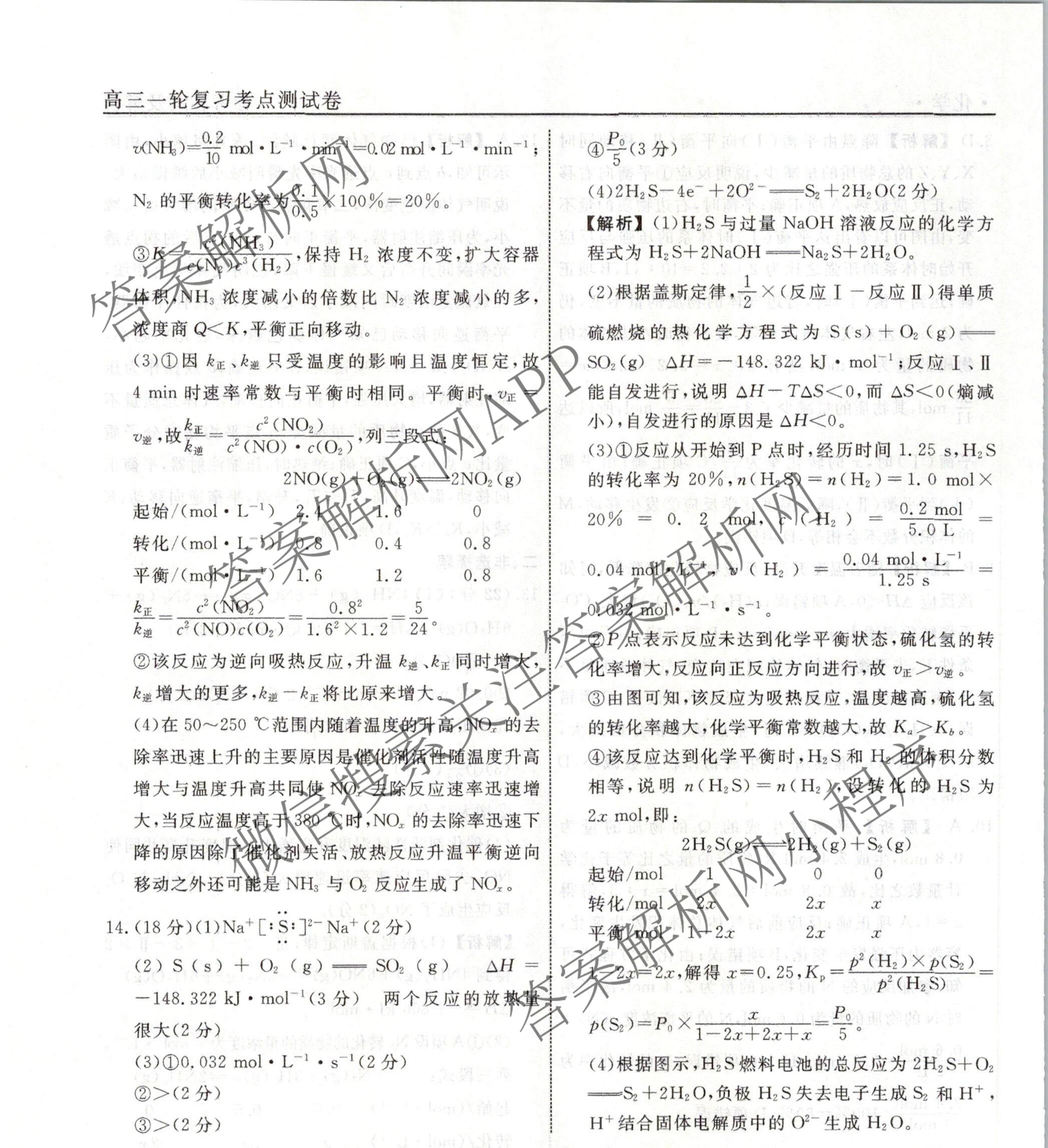 衡水名师卷2023-2024学年度高三一轮复习考点测试卷化学(40分钟空心菱形)(十九)19答案