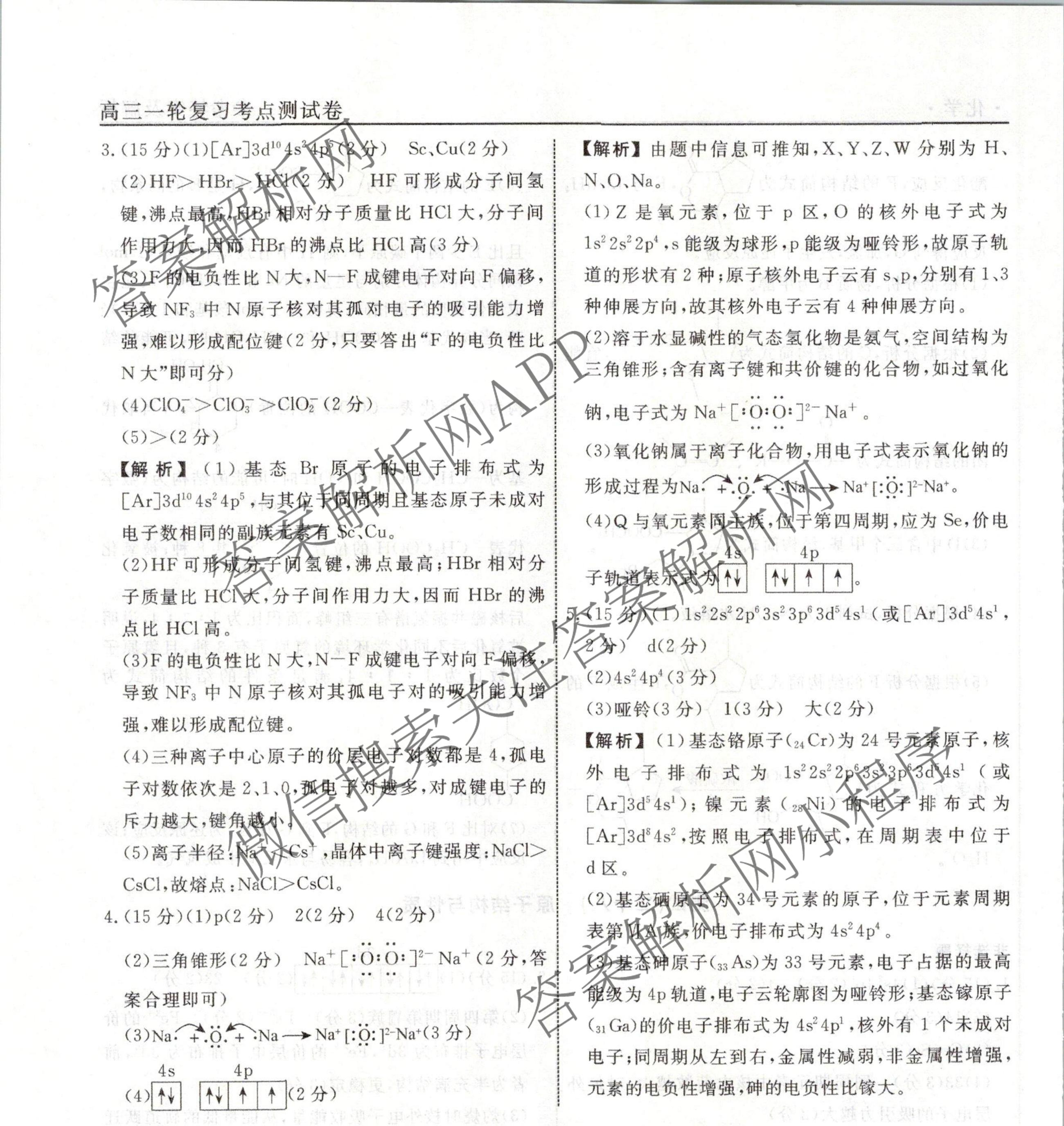 衡水名师卷2023-2024学年度高三一轮复习考点测试卷化学(40分钟空心菱形)(二十八)28答案