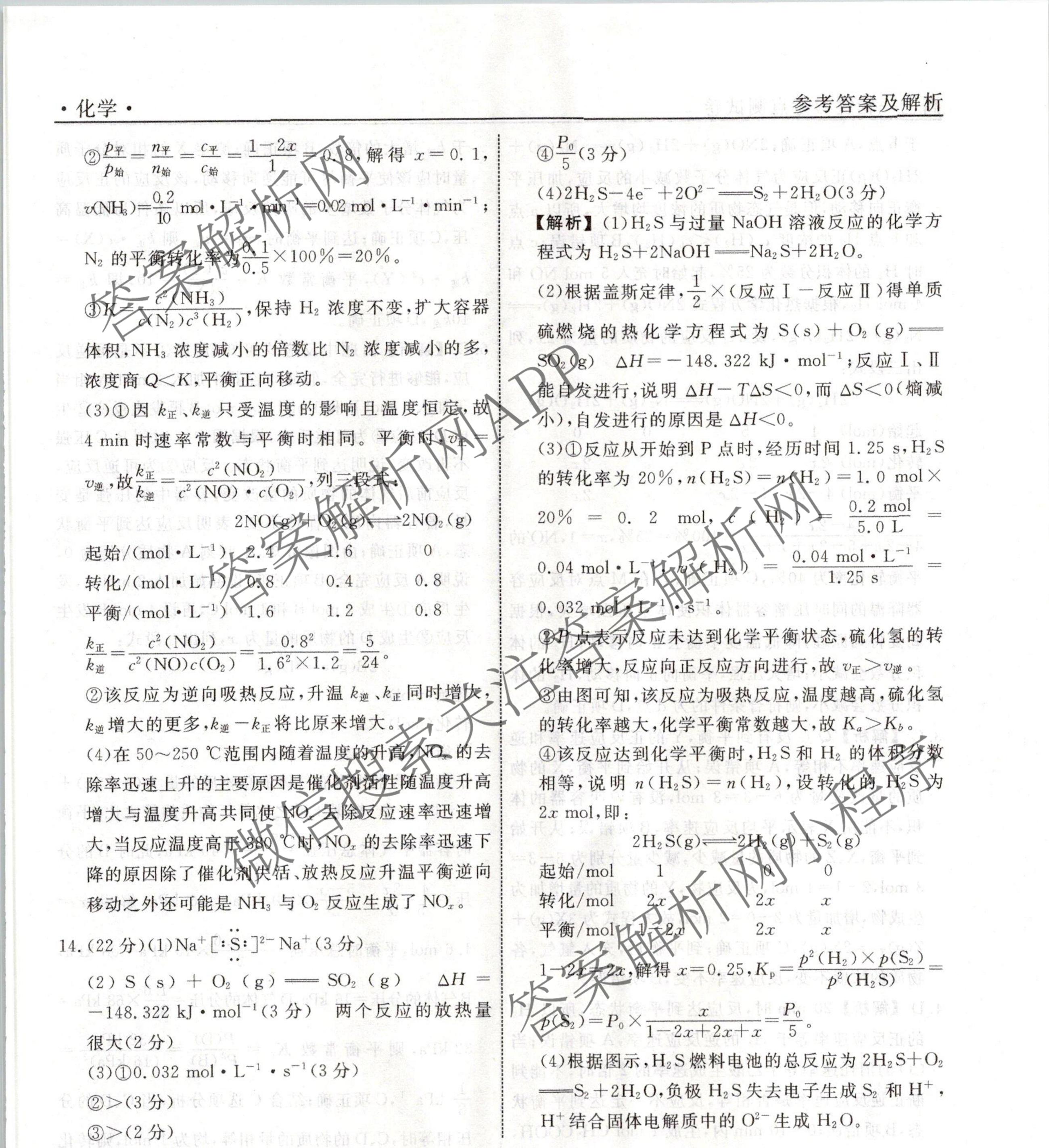 衡水名师卷2023-2024学年度高三一轮复习考点测试卷化学(40分钟双菱形)(二十二)22答案