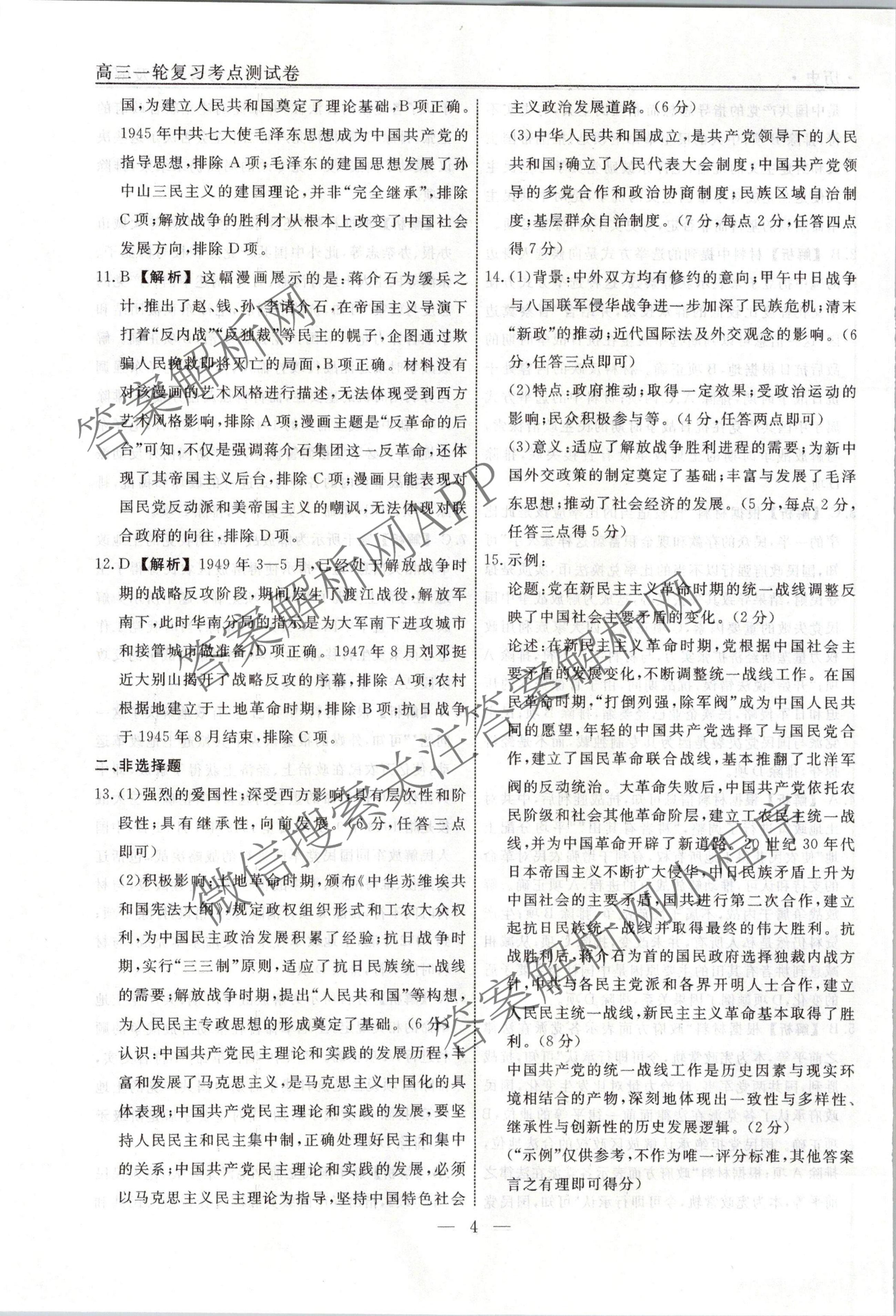 衡水名师卷2023-2024学年度高三一轮复习考点测试卷历史(40分钟实心菱形)(十二)12答案
