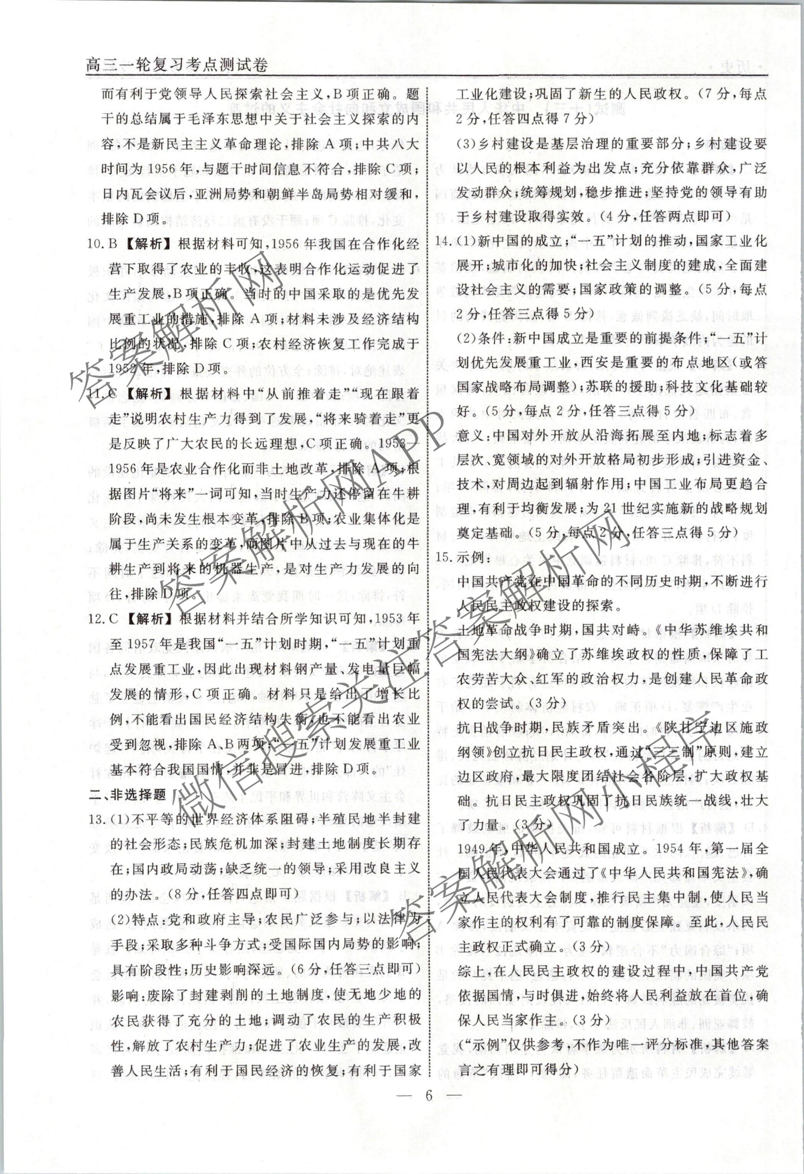 衡水名师卷2023-2024学年度高三一轮复习考点测试卷历史(40分钟实心菱形)(十三)13答案