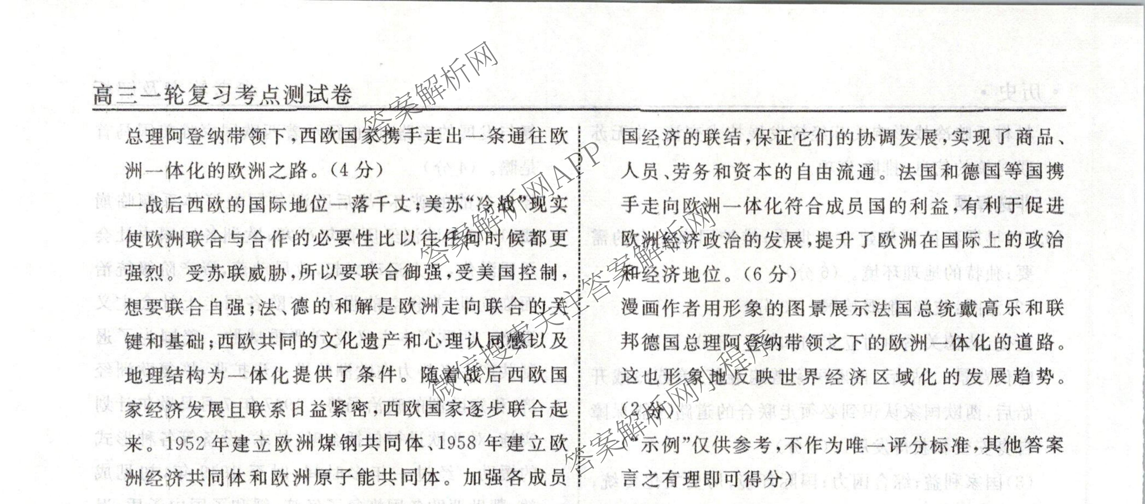 衡水名师卷2023-2024学年度高三一轮复习考点测试卷历史(40分钟实心菱形)(二十五)25答案