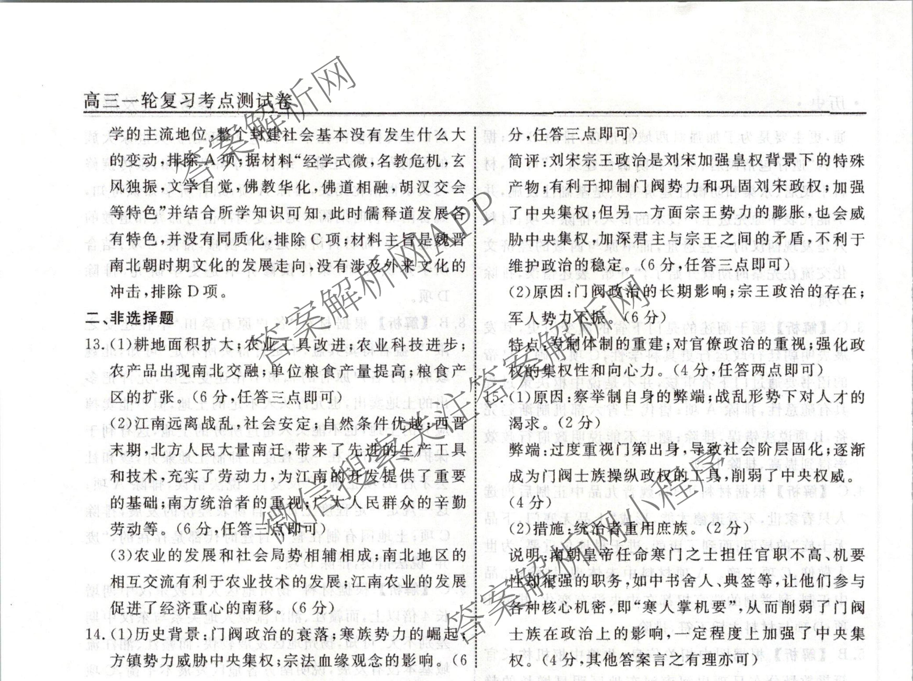 衡水名师卷2023-2024学年度高三一轮复习考点测试卷历史(40分钟实心菱形)(三)3答案
