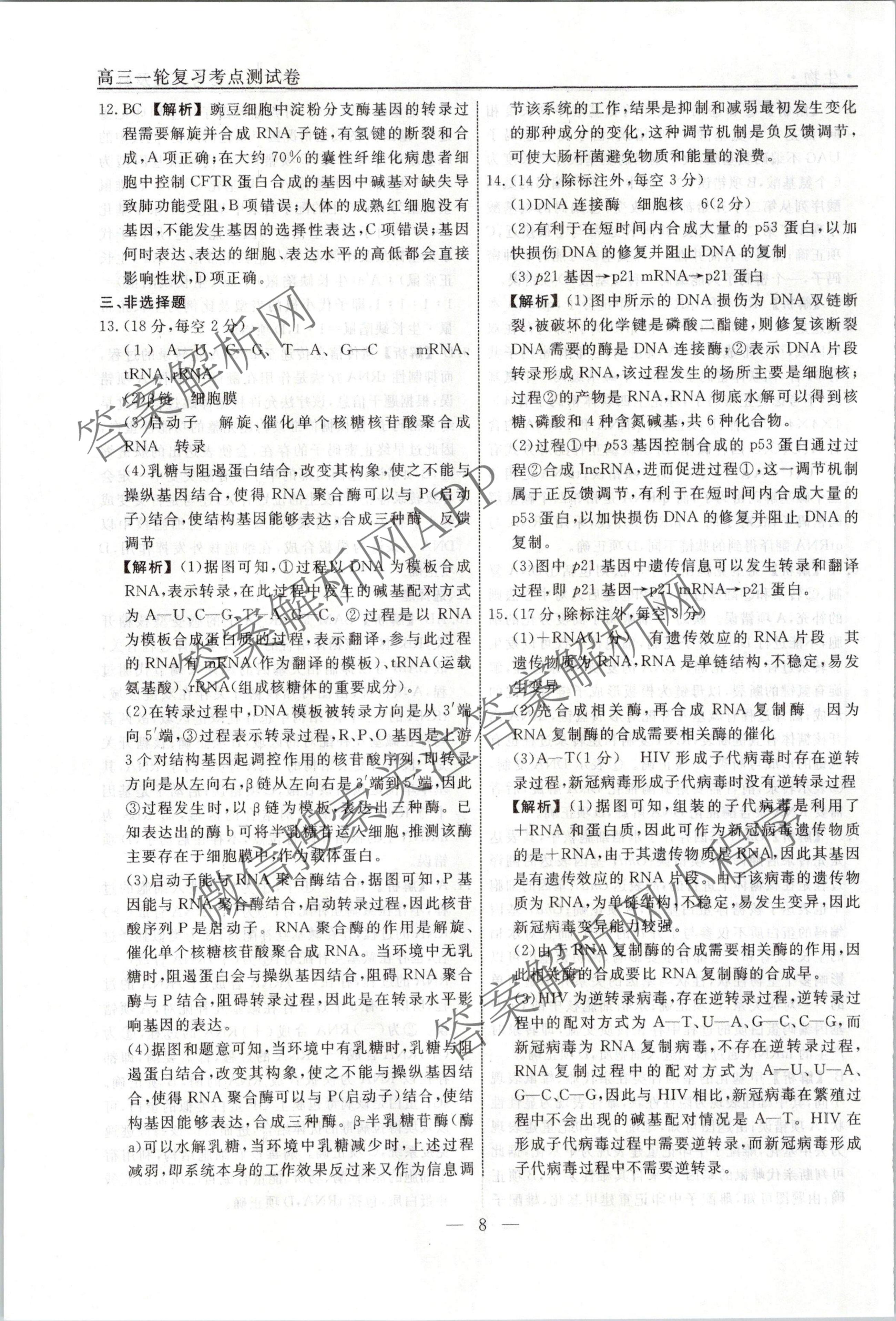 衡水名师卷2023-2024学年度高三一轮复习考点测试卷生物(40分钟双菱形)(十三)13答案