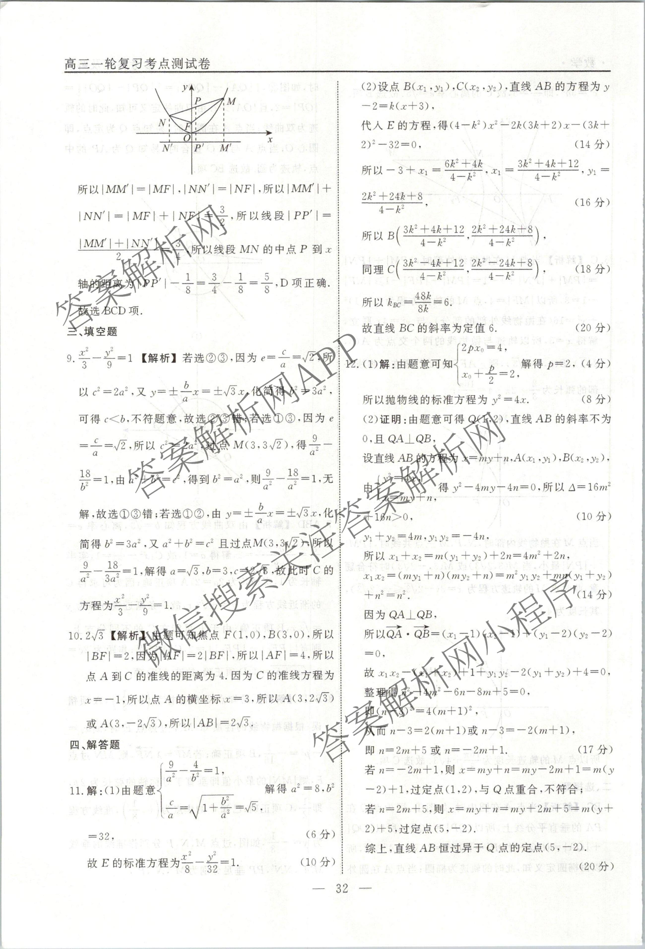 衡水名师卷2023-2024学年度高三一轮复习考点测试卷数学(40分钟实心菱形)(二十四)24答案