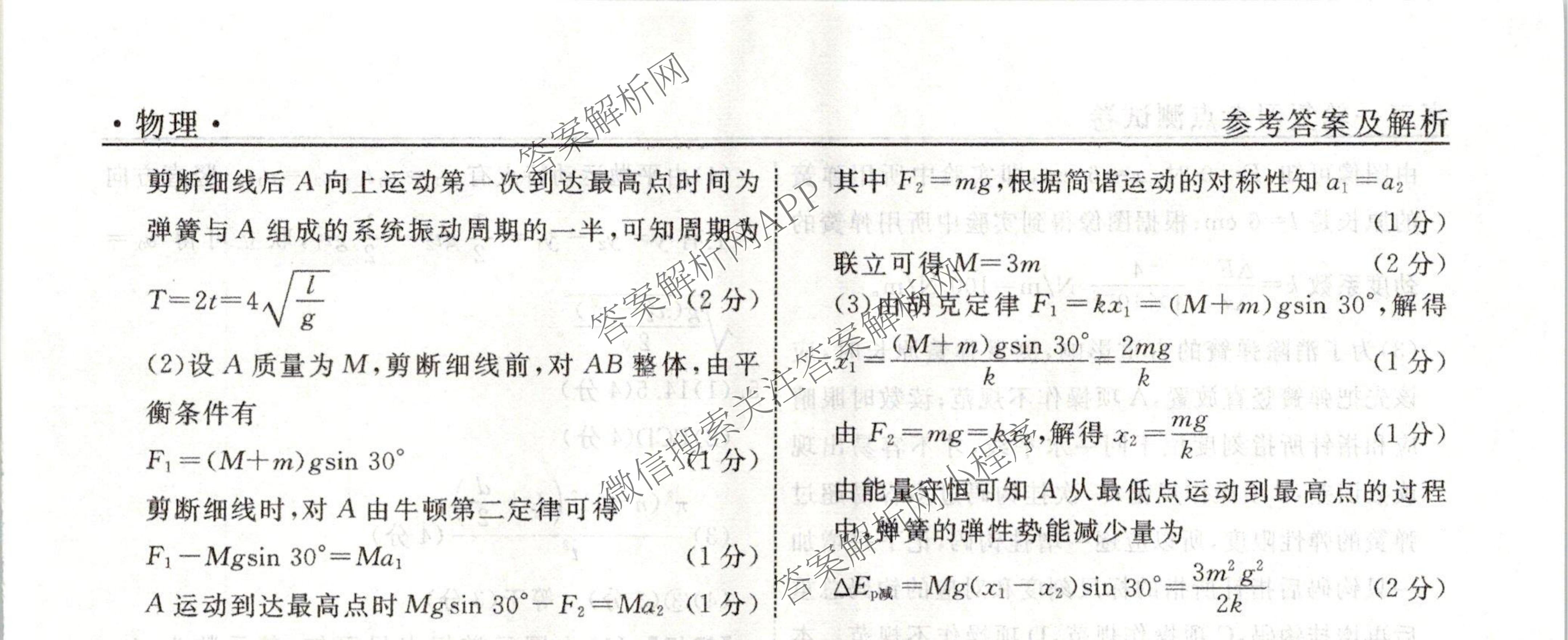 衡水名师卷2023-2024学年度高三一轮复习考点测试卷物理(40分钟实心菱形)(十五)15答案