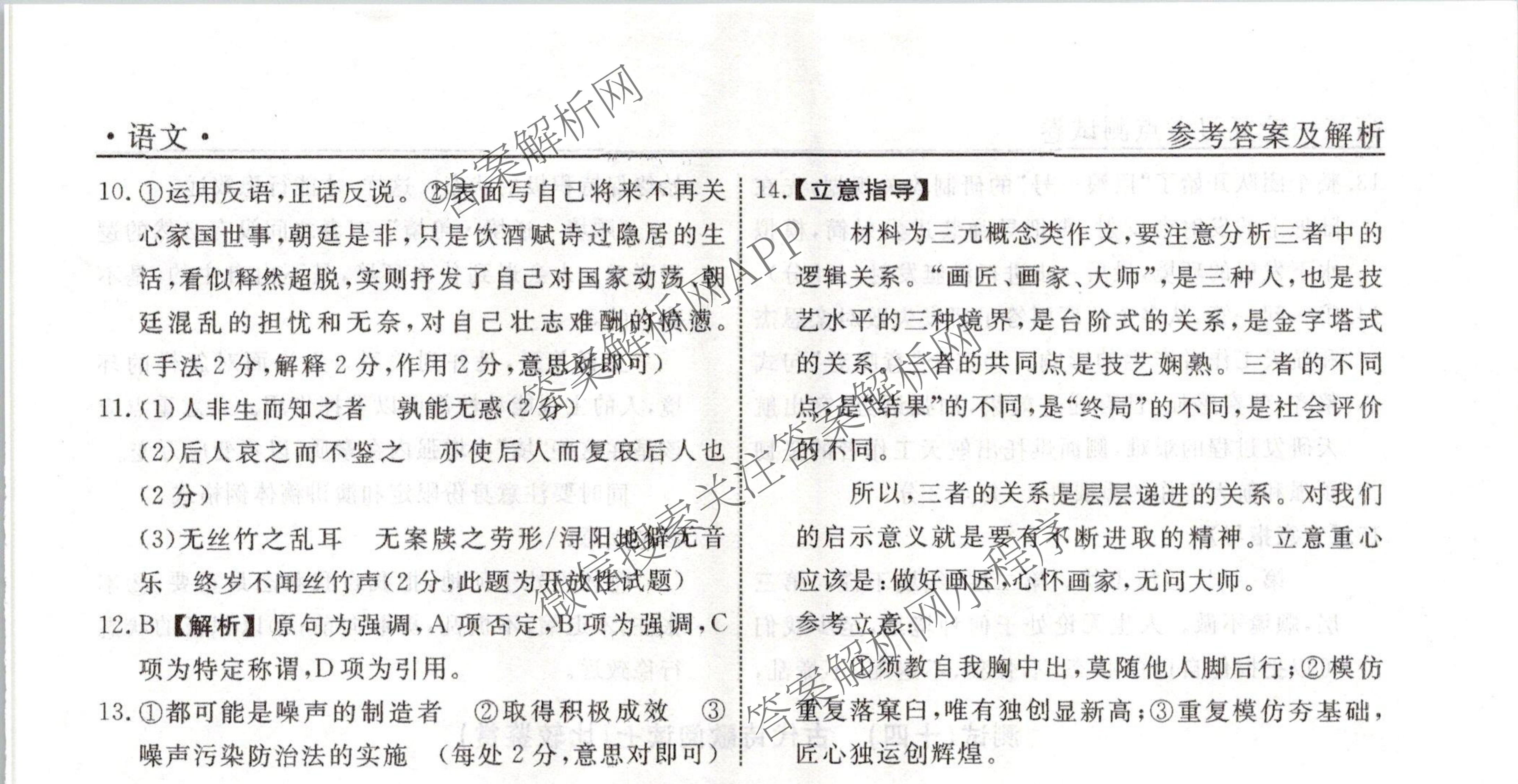 衡水名师卷2023-2024学年度高三一轮复习考点测试卷语文(40分钟实心菱形)(十二)12答案