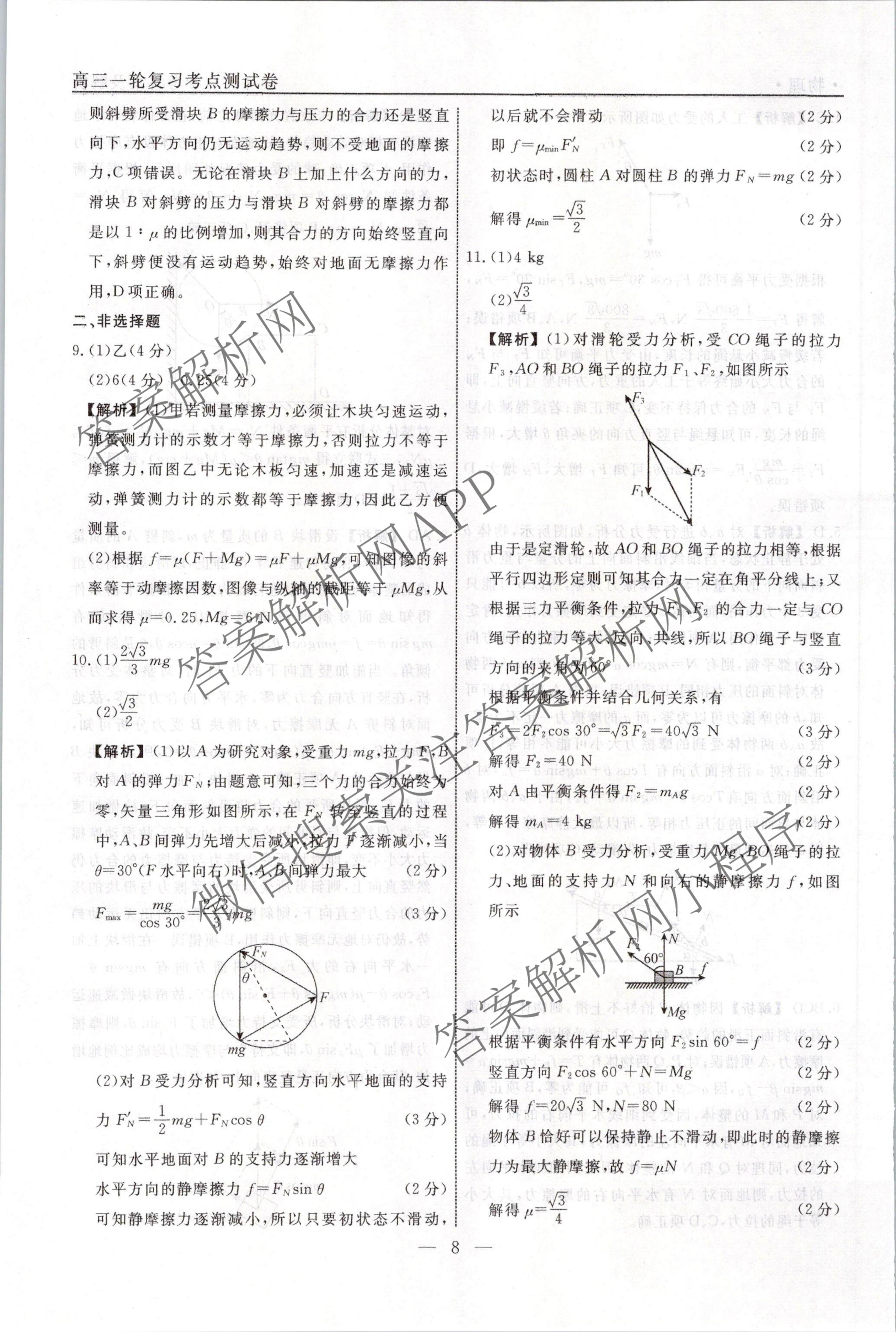 衡水名师卷2023-2024学年度高三一轮复习考点测试卷物理(40分钟实心菱形)(四)4答案