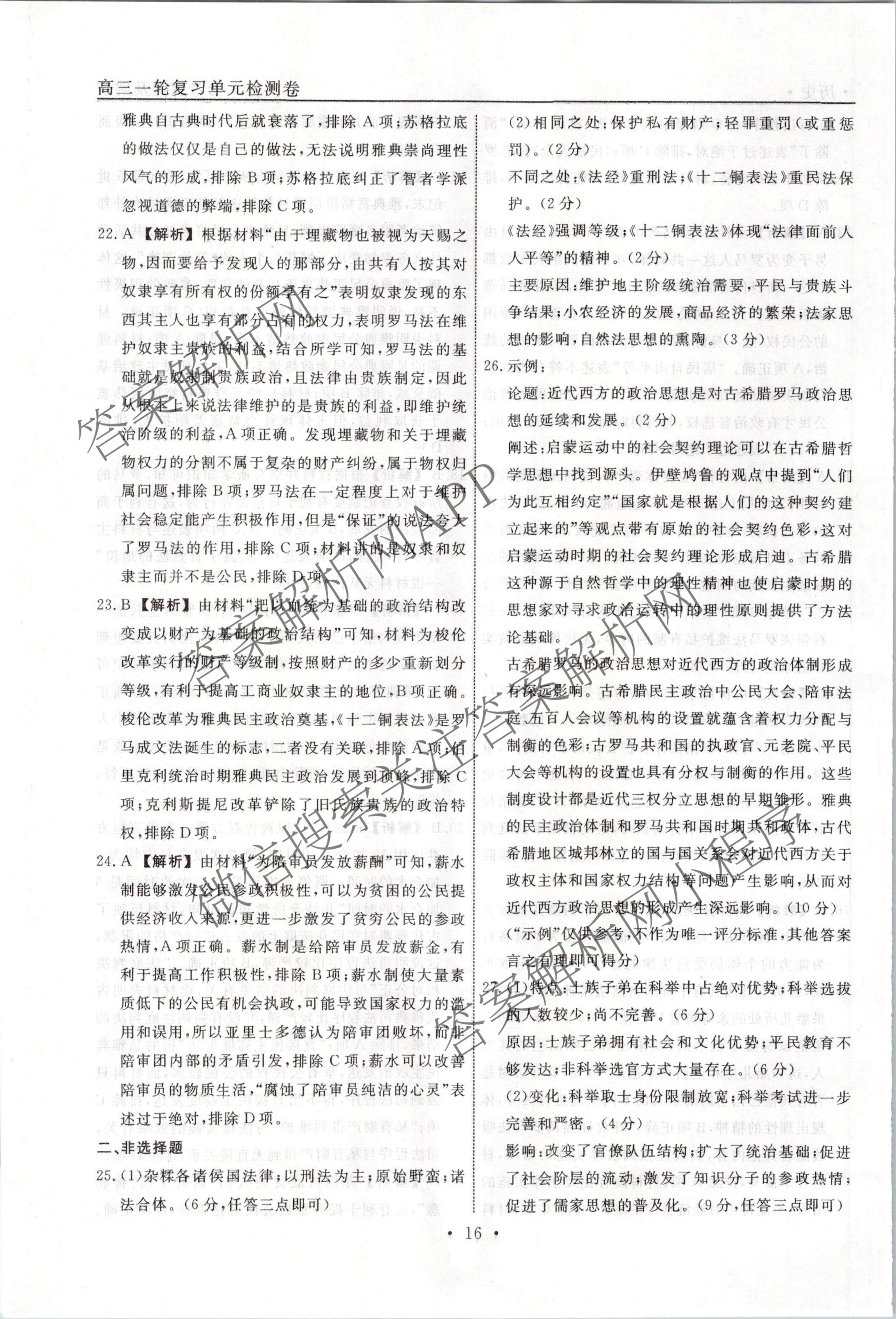 衡水名师卷2023-2024学年度高三一轮复习单元检测卷历史(空心菱形)检测(五)5答案