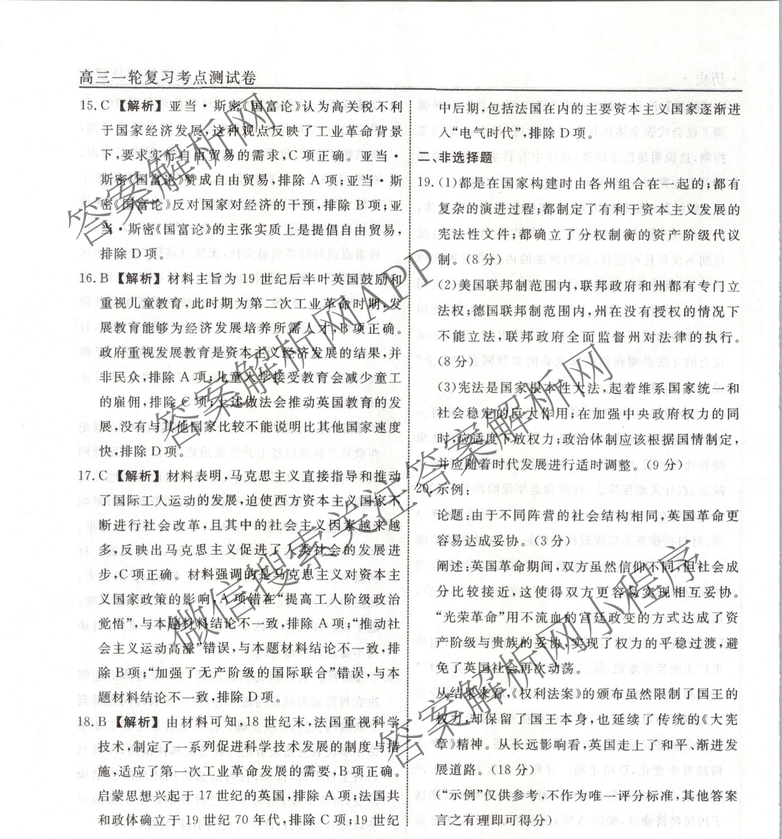 衡水名师卷2023-2024学年度高三一轮复习考点测试卷历史(40分钟同心圆)(二十)20答案